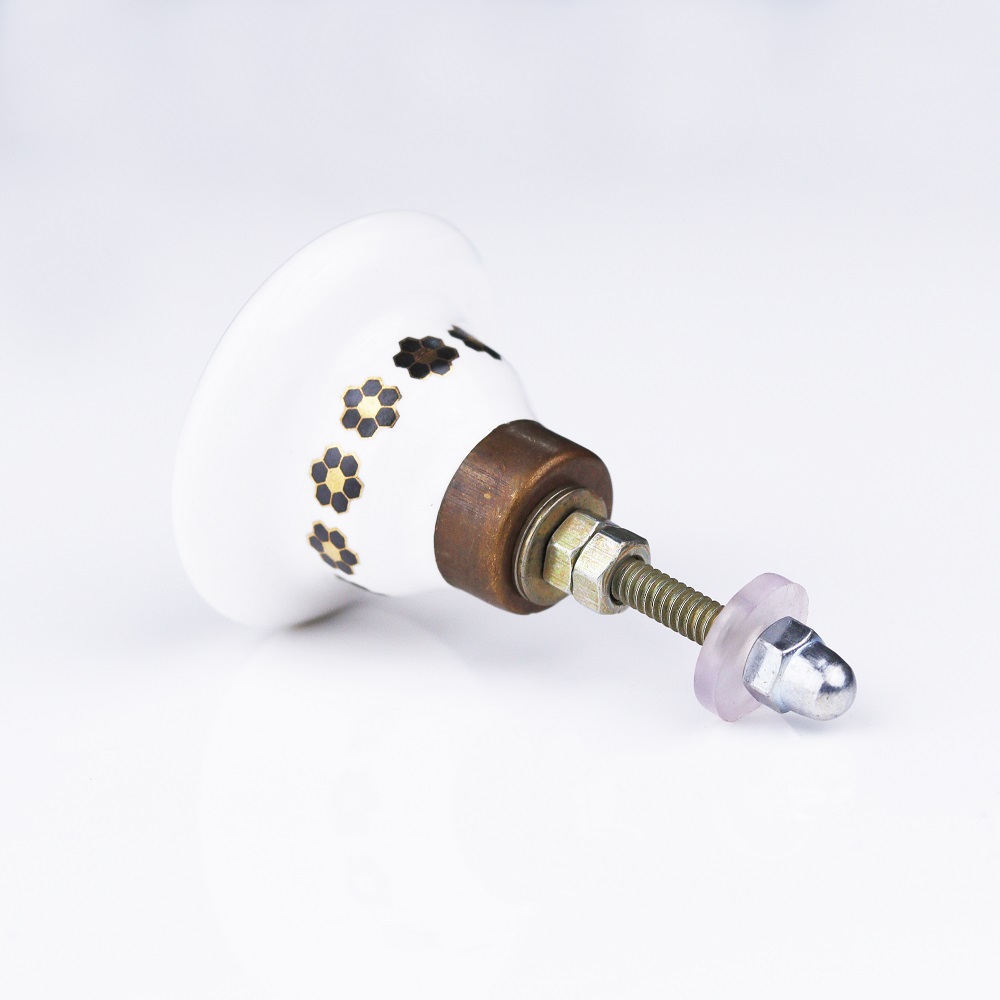 Indianshelf.com for bulk/wholesale orders.Indianshelf.us for personal purchases.The Handmade Golden Bee Ceramic Drawer Knob beautifully merges artistic craftsmanship with elegant detailing, making it a striking addition to your furniture. With its delicate golden bee design set against a ceramic base, this knob adds a refined, nature-inspired touch to your cabinets, drawers, or doors. The gold accents enhance its allure, creating a luxurious appearance that suits both modern and classic interiors.