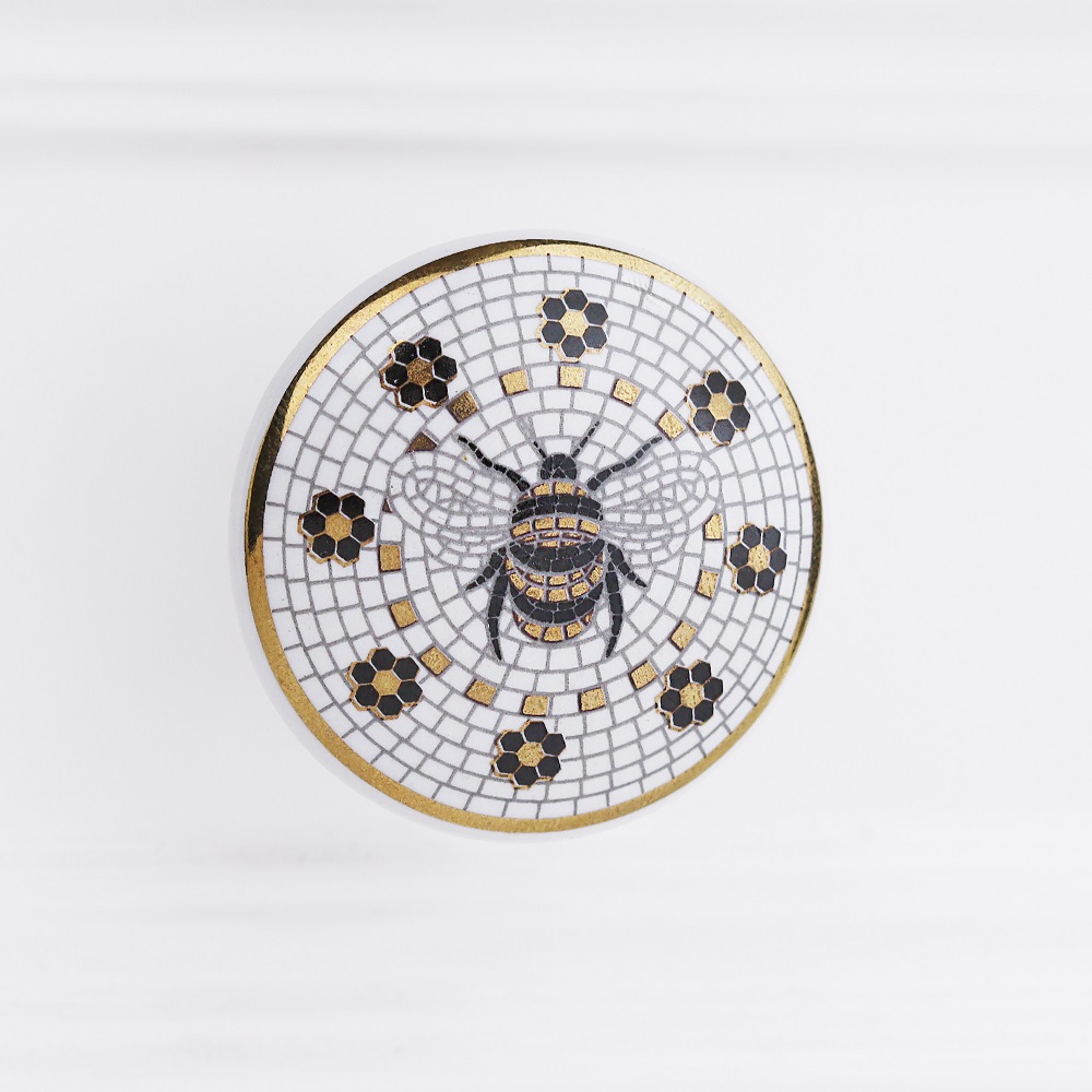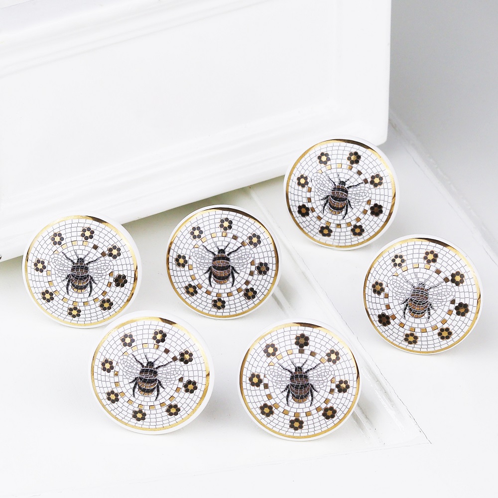 This drawer knob is carefully handcrafted, featuring a detailed golden bee motif that introduces a whimsical yet sophisticated element to your furniture. The gold contrasts beautifully with the smooth ceramic base, resulting in a timeless piece that complements various home décor styles.
