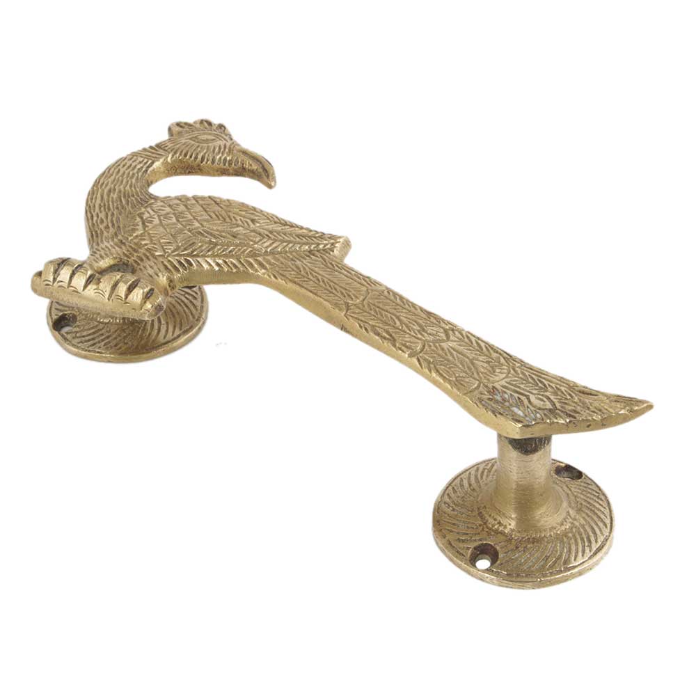 Handmade Golden Brass Door Handle Indian Peacock Design