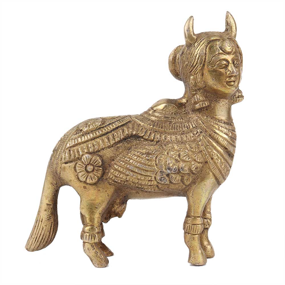 • Handmade Golden Brass Indian Cow Kamdhenu Statue