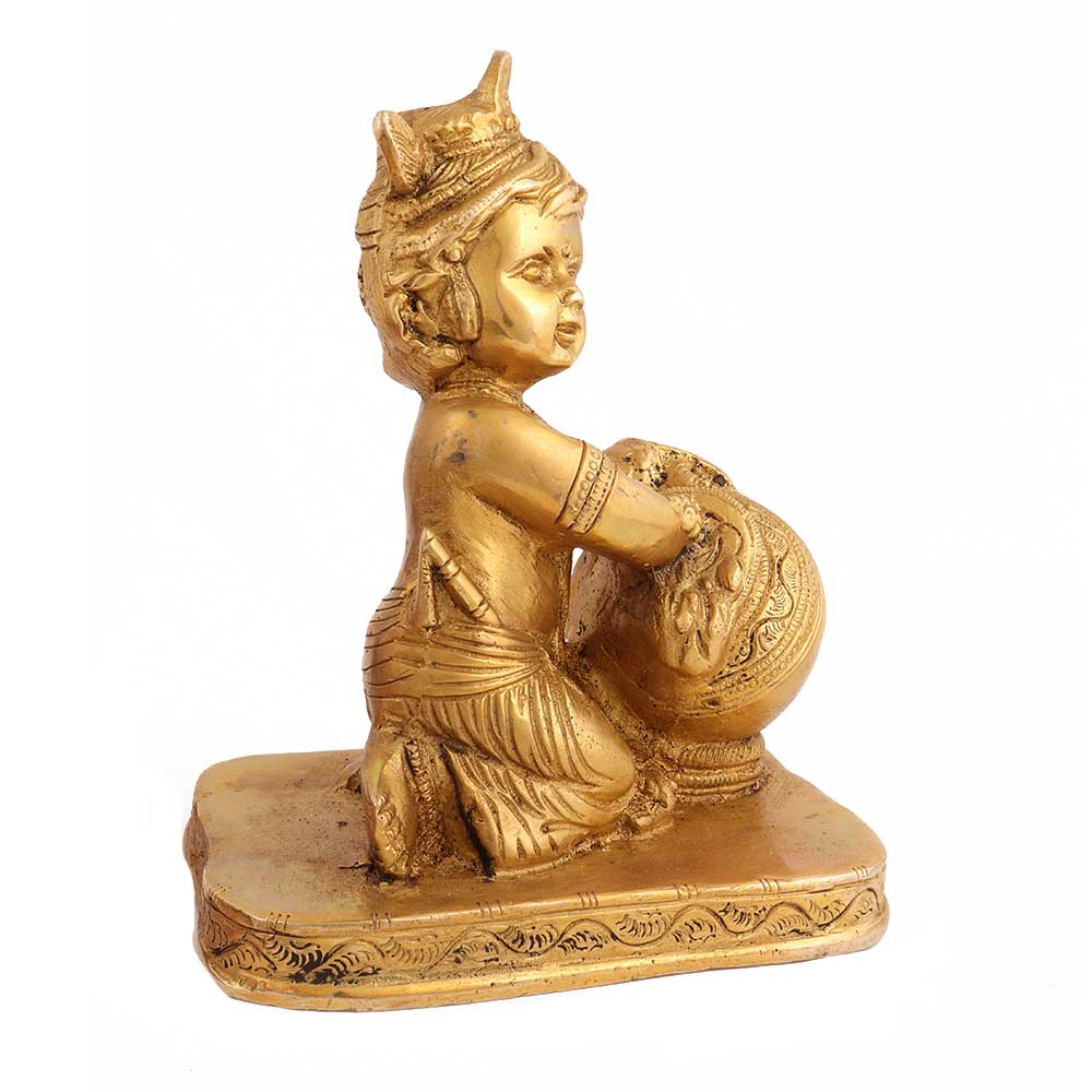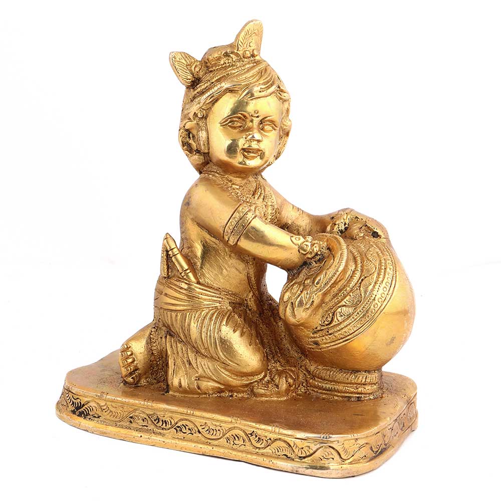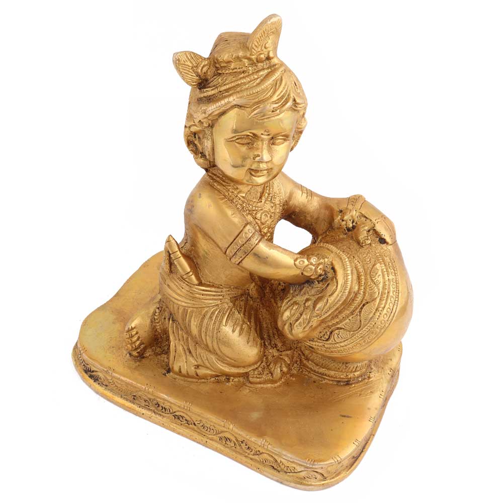 • Handmade Golden Brass Krishna Makhan Chor Statue