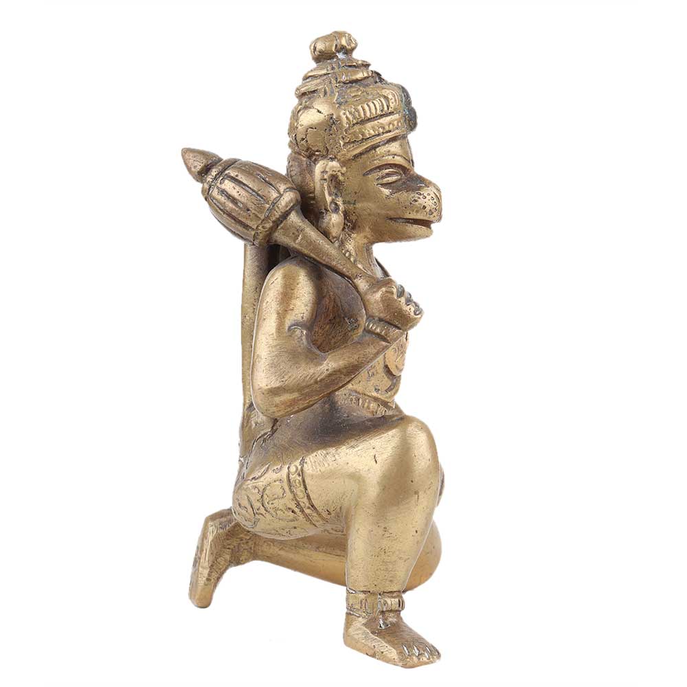 • Handmade Golden Brass Lord Hanuman Statue in Blessings Sitting Pose