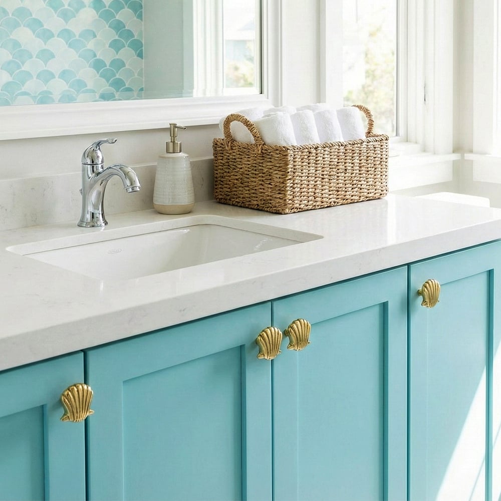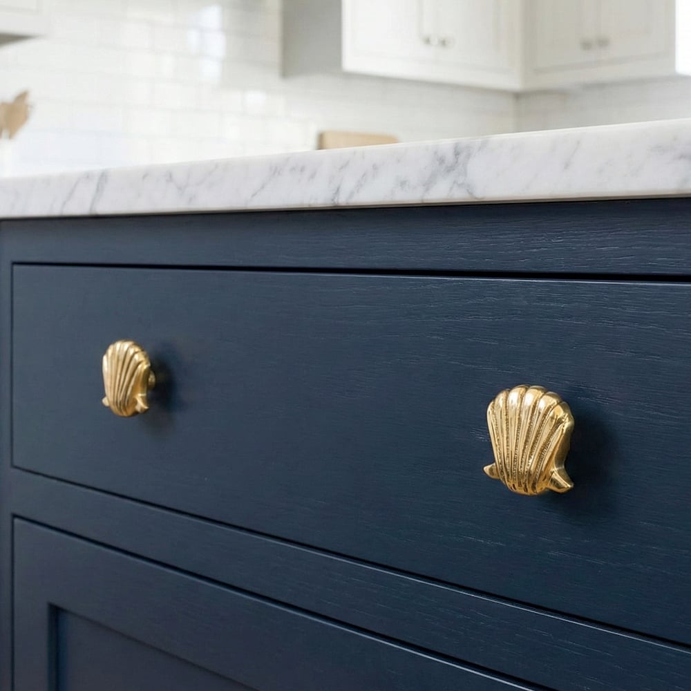 • Handmade Golden Brass Scallop Shell Knob – Elegant Cabinet and Drawer Pull-1 Piece