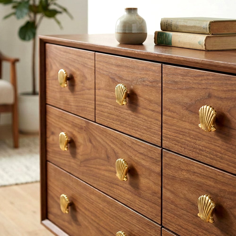 Handmade Golden Brass Scallop Shell Knob – Elegant Cabinet and Drawer Pull-1 Piece