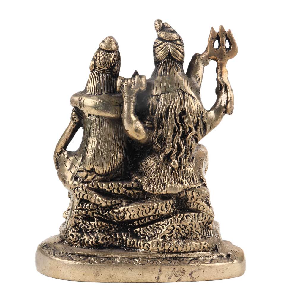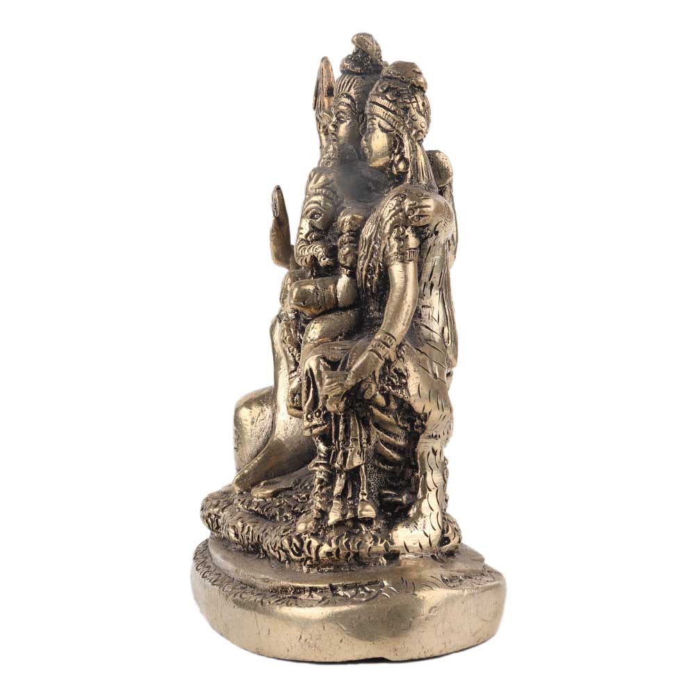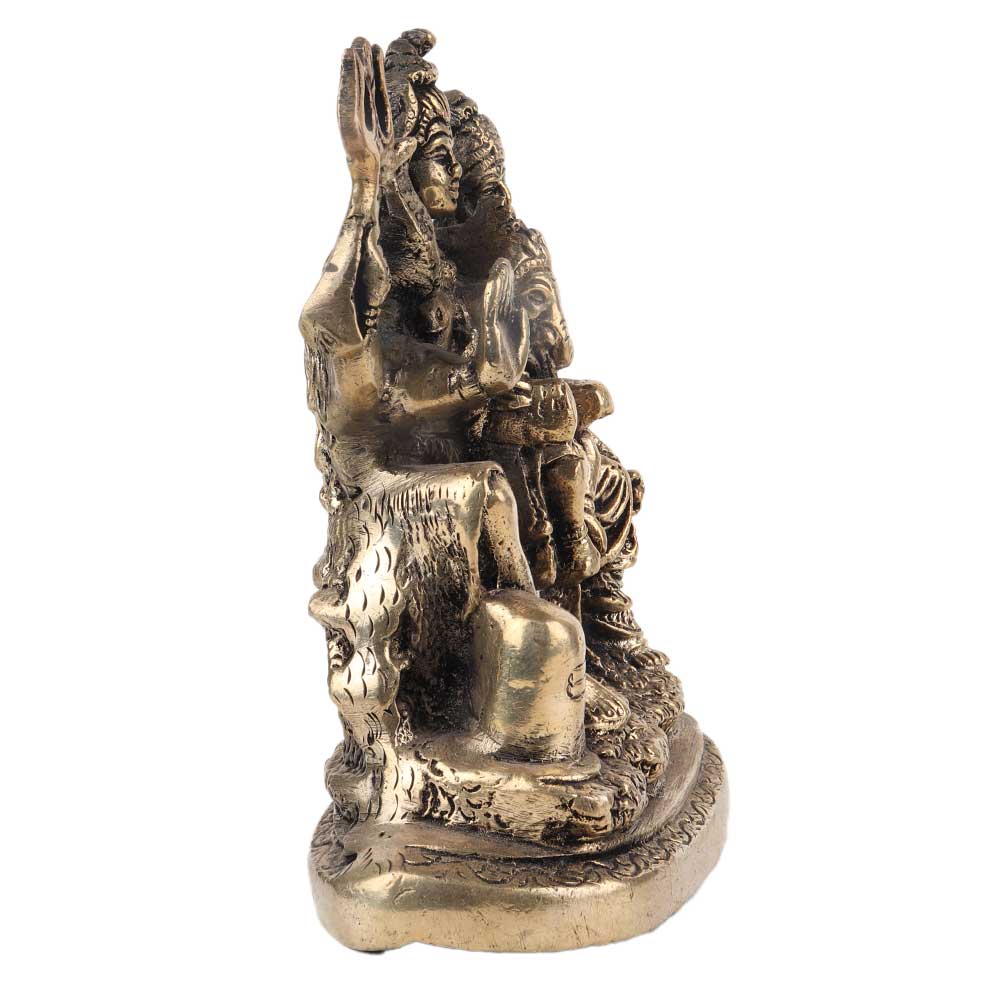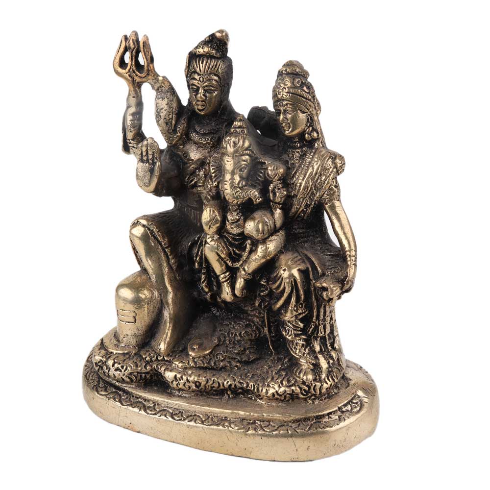 Brass Shiv Parivar with Lord Shiva and Goddesses Parvati Seated with Lord Ganesha on Her Lap. This Statue When Placed in the Interiors of Your Hour Ensures Harmonious Relations Between the Family Members.