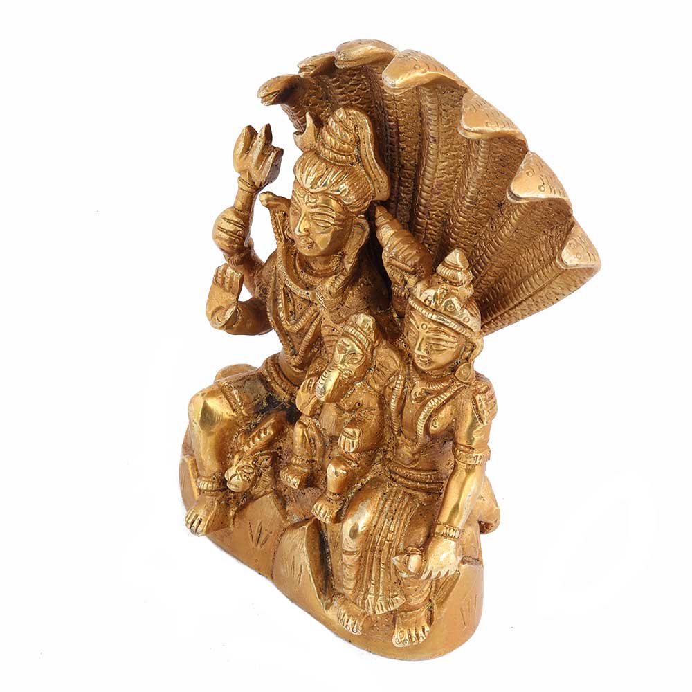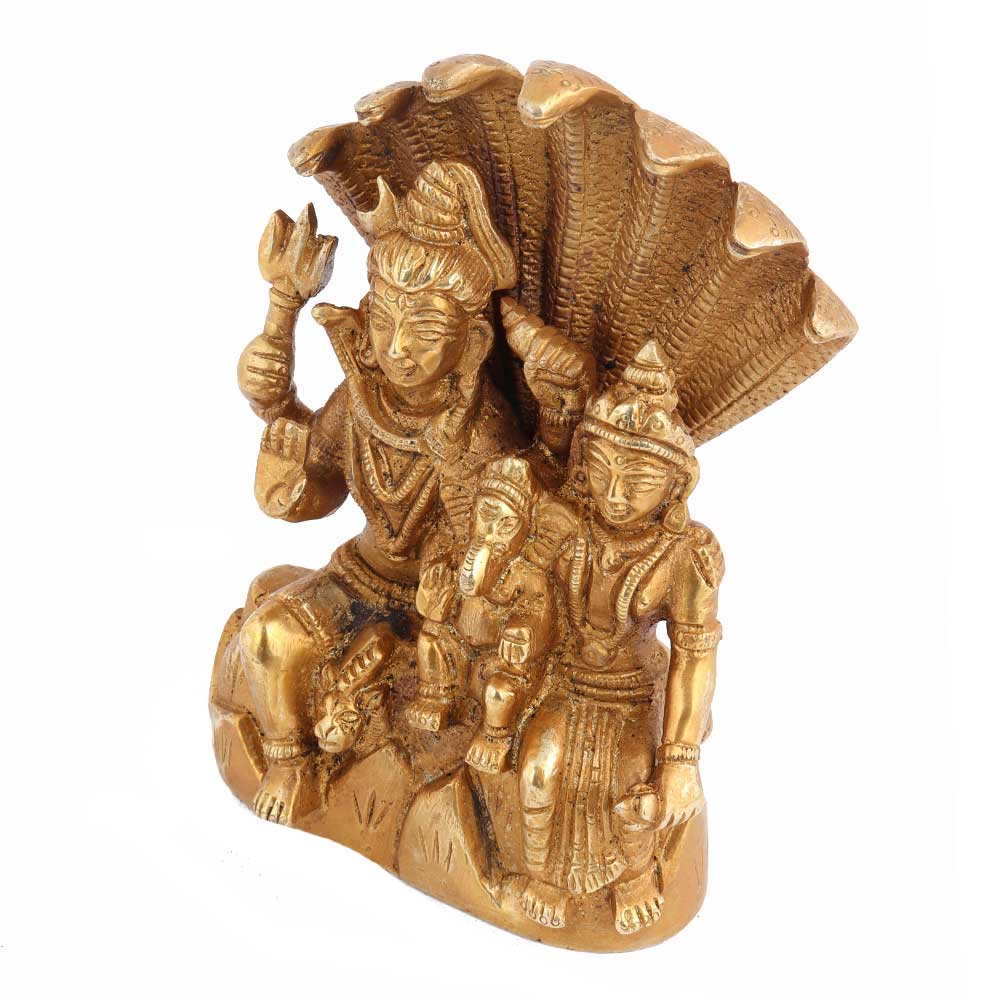 This Golden Brass Lord Shiva Parvati and Ganesha Murti Shiv Parivar family idol statue is used for home decoration, Mandir, Temple, Diwali puja, birthday gift and office desk.
