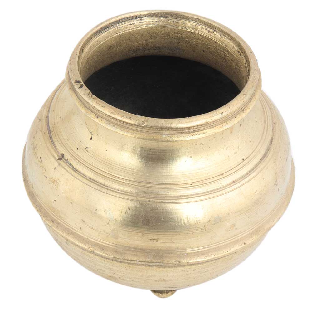 A typical south Indian style brass pot is used for storing holy water and for decoration because it has a retro look. It can be used as a corporate gift or as a return gift.