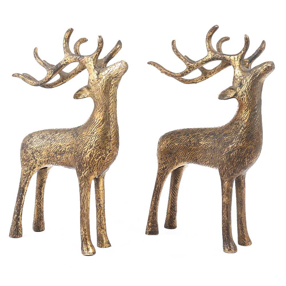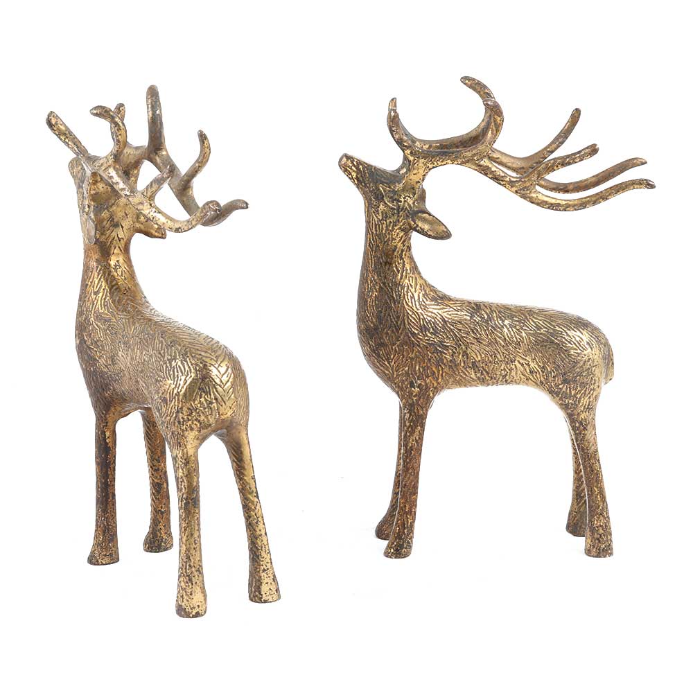 Indianshelf.com for bulk/wholesale orders.Indianshelf.us for personal purchases.The Handmade Golden Brass Standing Deers in Pair is a magnificent work of art, beautifully crafted to symbolize love, partnership, and the natural elegance of wildlife. Handcrafted with intricate detailing, these majestic deers are designed to stand together in harmony, bringing a sense of balance and serenity to any space. Their golden finish enhances the warmth of any room, making them timeless decor pieces for collectors and nature enthusiasts alike.