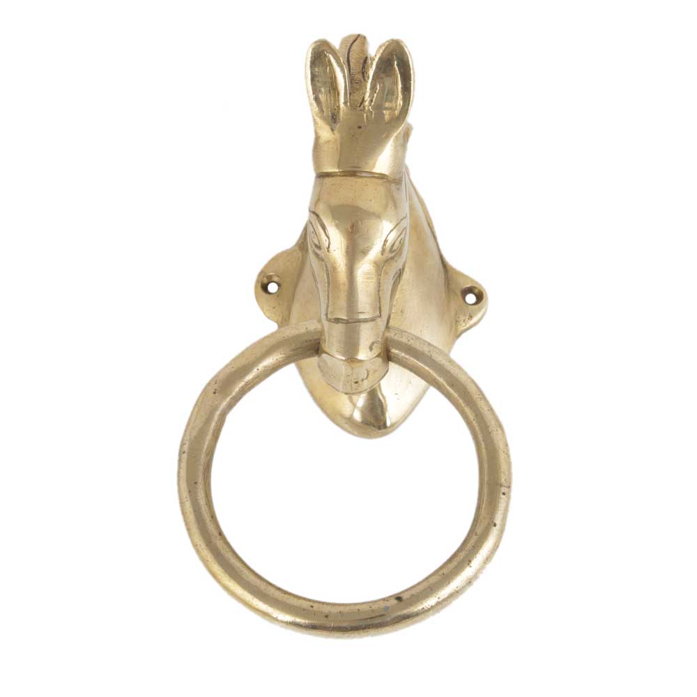 Indianshelf.com for bulk/wholesale orders.Indianshelf.us for personal purchases.The Handmade Golden Brass Towel Ring with Horse Head is a striking blend of functionality and artistic design. This unique piece elevates any bathroom or powder room with its timeless elegance and subtle equestrian flair. Crafted with care and attention to detail, this towel ring is more than just a bathroom accessory – it’s a statement of luxury, style, and sophistication.