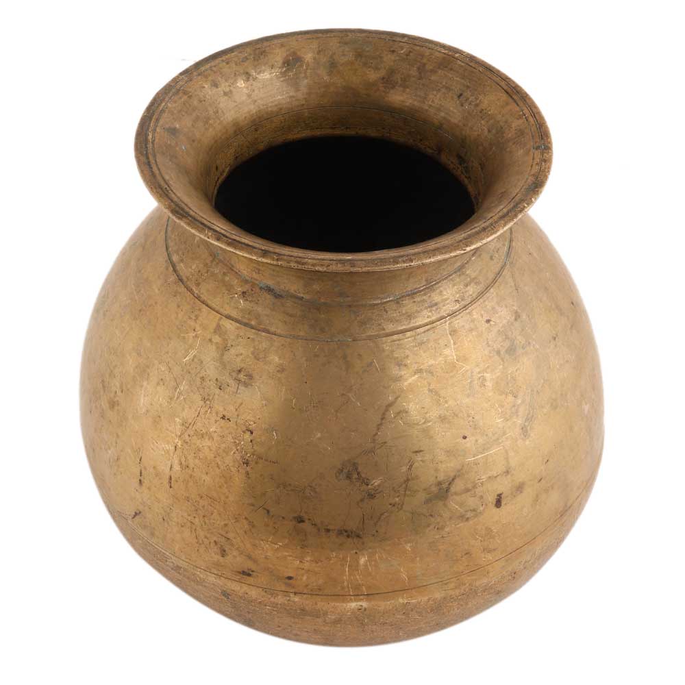 This handmade golden brass water pot or lota is very suitable as a wedding, an anniversary gift for parents or husband/wife or as a delightful addition to your current pooja series.