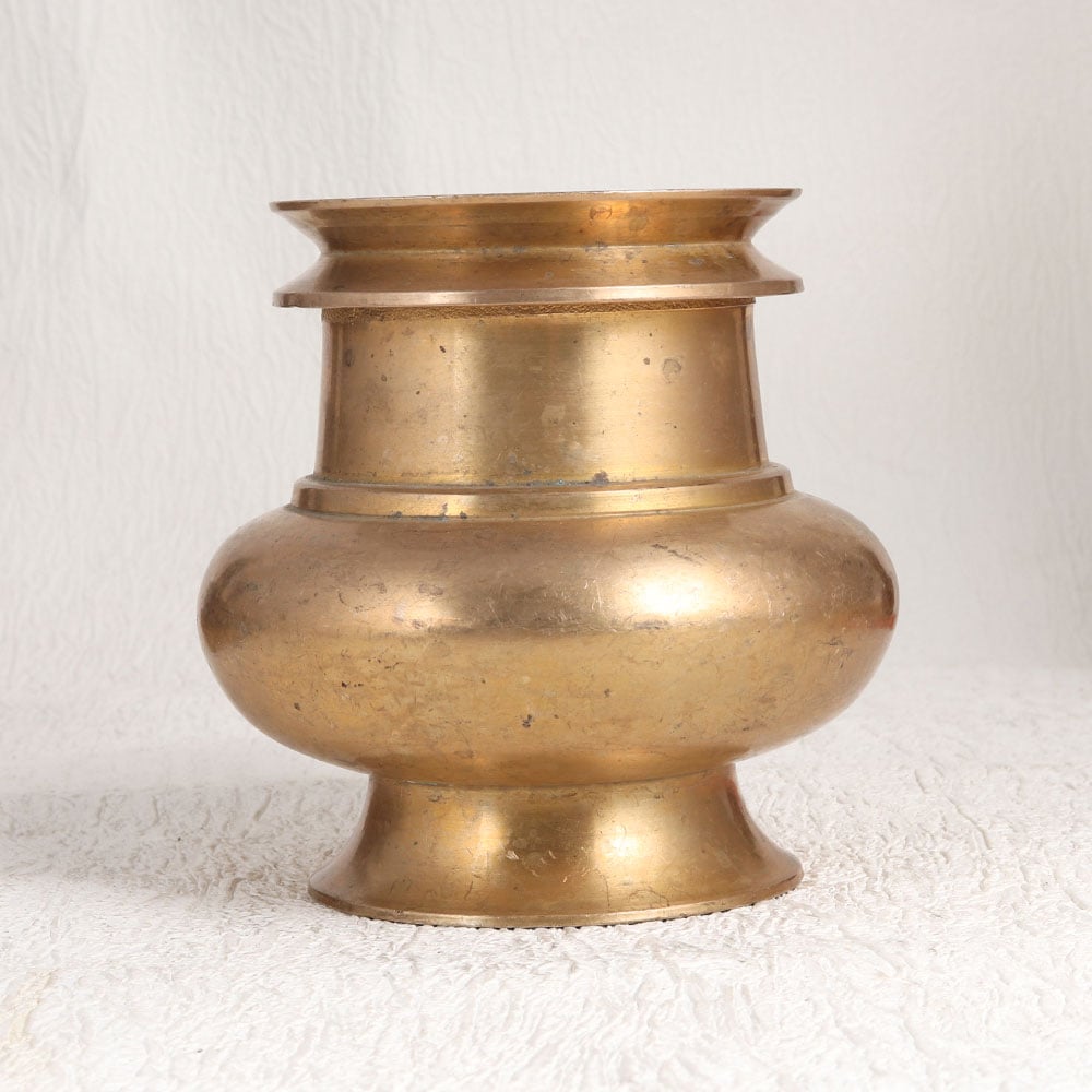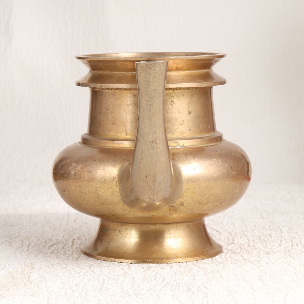 Buy a Vintage Brass Holy Water Pot online which is a timeless piece of artistry crafted by professional Indian artisans in the revered South Indian Art tradition. Made from high-quality brass, this pot boasts an antique golden finish that adds a touch of opulence to any setting. With its unique spout design, this pot serves a dual purpose. It can be used as a stunning decorative flower pot, enhancing the ambiance of your home, office, restaurant, hotel, cafe, or shop with its vintage charm. Additionally, it retains its original spiritual significance, making it a perfect companion during prayer and meditation sessions. Historically, it was used to offer holy water to devotees, adding a sense of sacredness to your space. This Vintage Brass Holy Water Pot is a collector's dream and an ideal addition to exhibitions, showcasing its cultural and artistic heritage. It also makes for a thoughtful and meaningful gift for loved ones on special, festive, or auspicious occasions, sharing the beauty and spirituality of Indian craftsmanship.