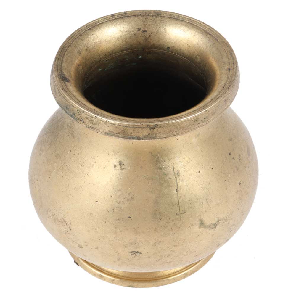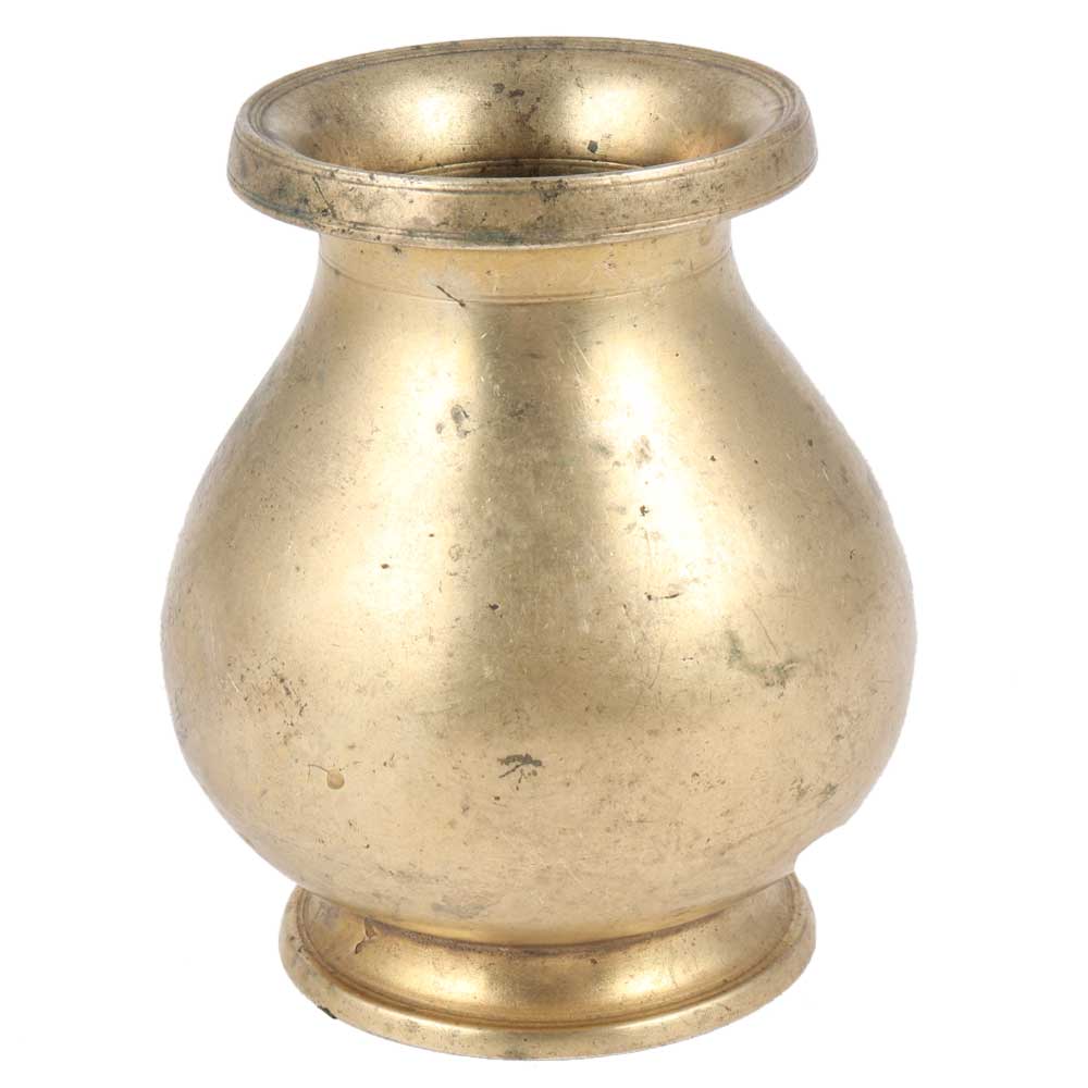 Make a timeless collection on your coffee table or console with this gorgeous old golden brass metal pot with a bulbous shape or use it as a beautiful vase.