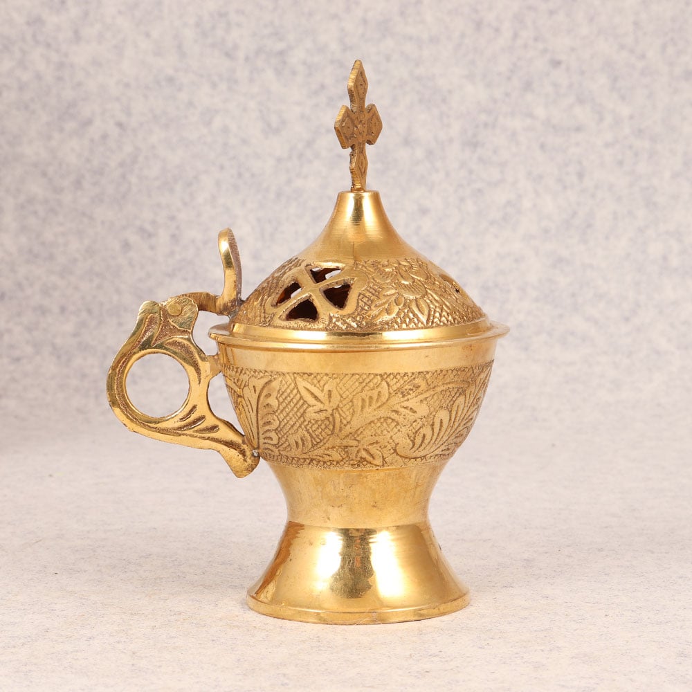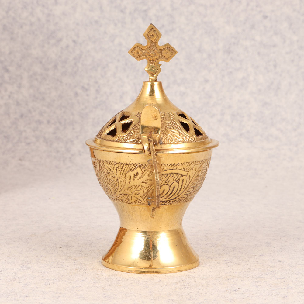Buy a Brass Incense Burner online that is a testament to the artistry of skilled Indian artisans. Meticulously crafted from high-quality brass, this incense burner showcases a timeless elegance that seamlessly blends traditional craftsmanship with contemporary design. The burner features intricate engravings, adding a touch of cultural richness and sophistication. Its shiny golden finish exudes opulence, creating a stunning focal point wherever it is placed. Handmade with precision and passion, each piece carries the legacy of generations of Indian craftsmanship, making it a unique addition to any space. Versatile and ornate, this brass incense burner is a perfect accent for homes, offices, restaurants, hotels, cafes, and prayer rooms. Its spiritual aura makes it an ideal choice for meditation and prayer, while its aesthetic appeal transforms it into a captivating decorative item. Whether adorning your living space or enhancing a vintage collection, this piece seamlessly bridges the gap between functionality and art. Celebrate special occasions with a thoughtful touch by gifting this brass incense burner to your loved ones. Its timeless charm and cultural significance make it a meaningful present for festive, auspicious, or memorable moments.