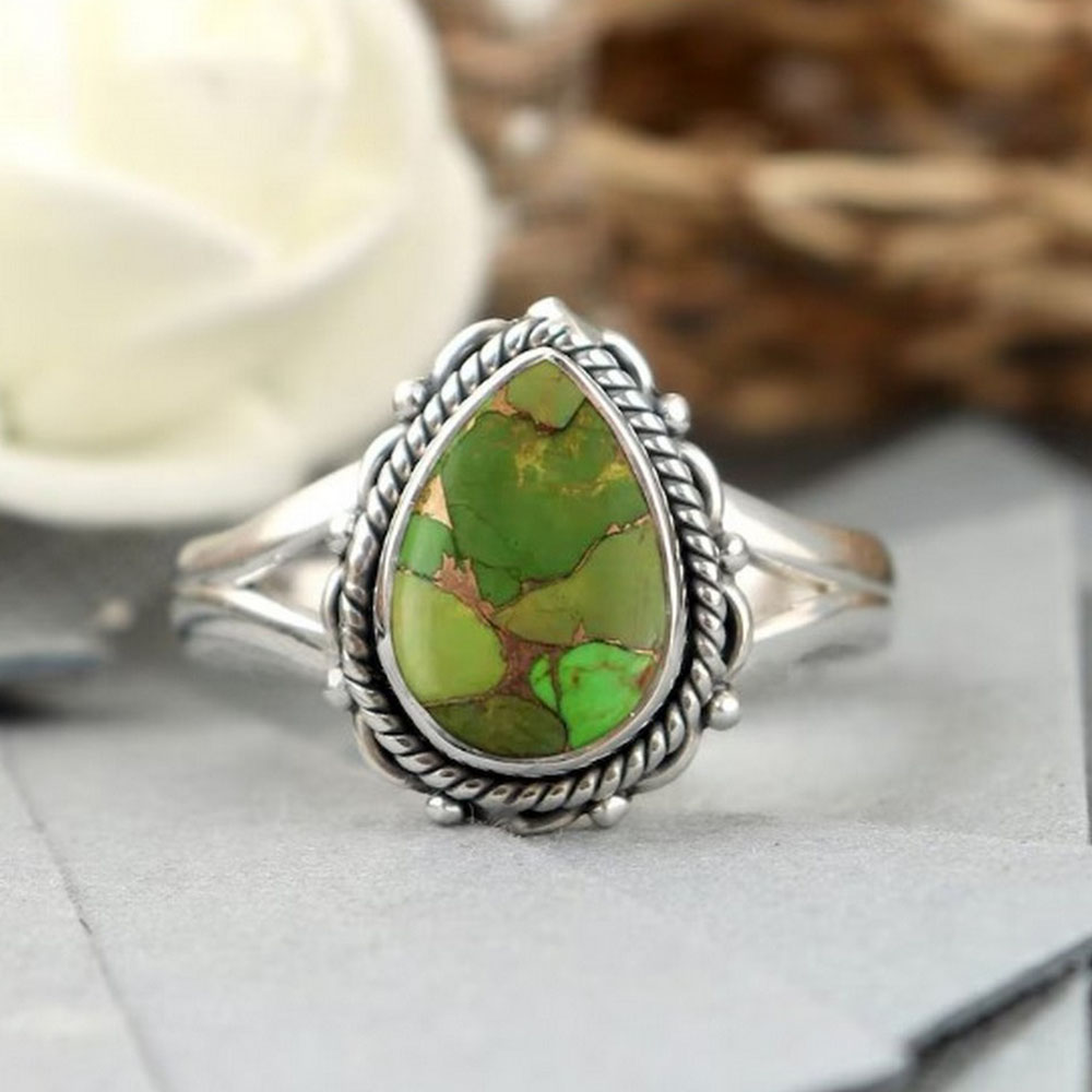 Delight in the allure of our handmade green turquoise ring 925 sterling silver boho gemstone jewelry, where natural green turquoise, 925 sterling silver and boho come together to create a classic beauty. This ring is for minimalist fans, each piece reflecting individuality and care. Packed & quality-checked by Indianshelf.