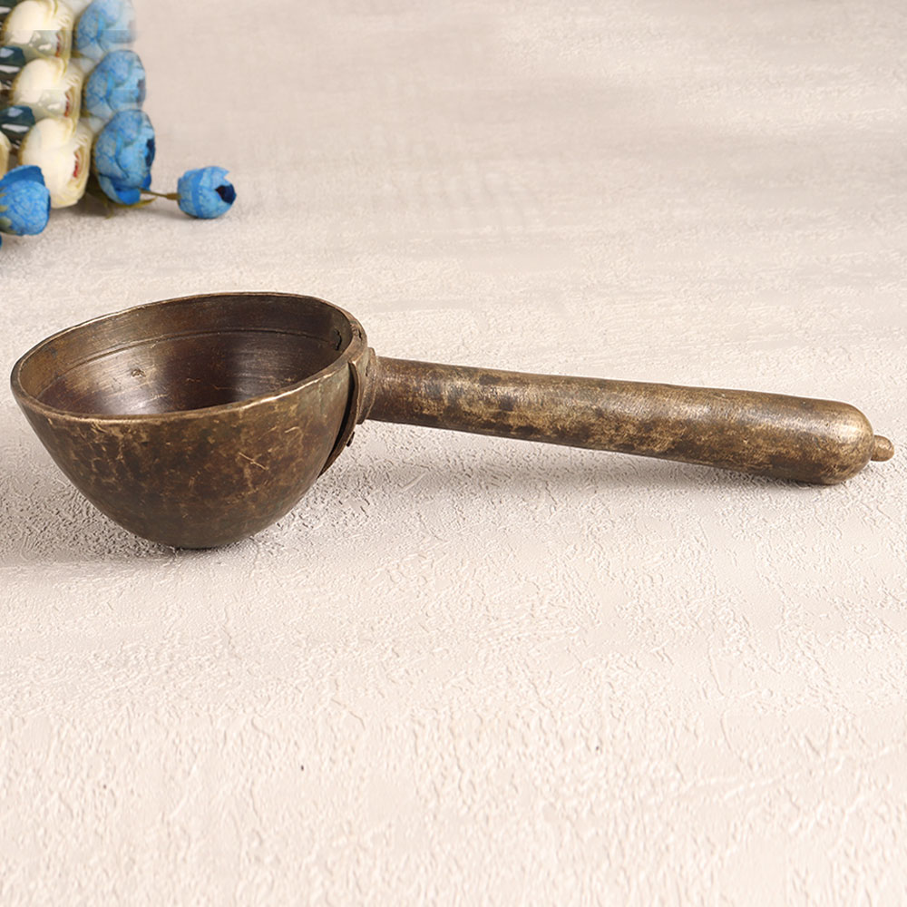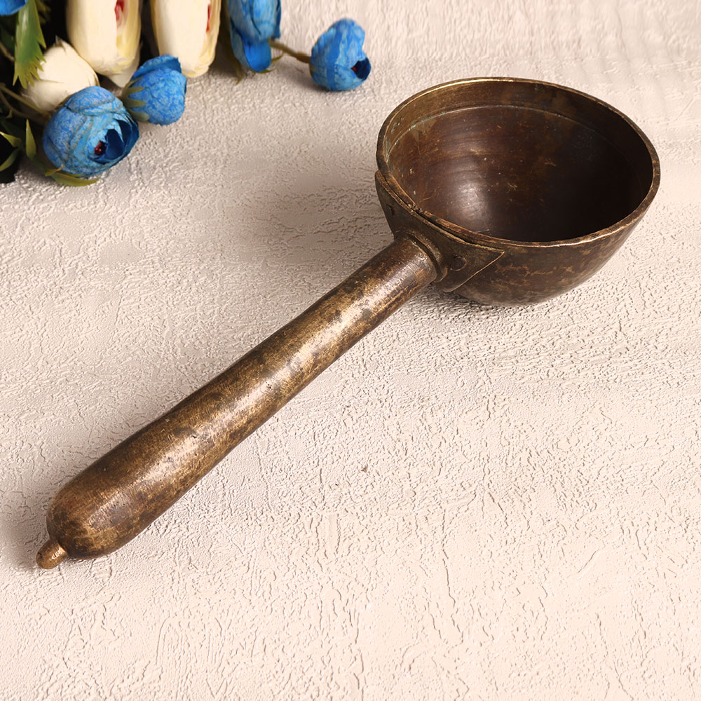 Enhance your decor with a touch of timeless elegance by adding this exquisite Vintage Brass Holy Spoon to your collection. Crafted with precision and care by highly talented Indian artisans, this piece showcases the rich heritage of traditional craftsmanship. The spoon features an antique brown finish and is a testament to the mastery of these artisans. Handmade from high-quality brass, this ornate spoon serves multiple purposes. Its versatility allows it to be a striking decorative piece in your home, office, hotel, cafe, shop, or restaurant. Its intricate design and historical appeal make it a captivating addition to any space. For those seeking spiritual significance, this holy spoon is ideal for havan ceremonies, adding a sacred touch to your rituals. Moreover, it's a splendid addition to any vintage collection, and its unique charm can be showcased at exhibitions, serving as a conversation piece. This Vintage Brass Holy Spoon also makes for a thoughtful and cherished gift, perfect for your loved ones on special, festive, or auspicious occasions.