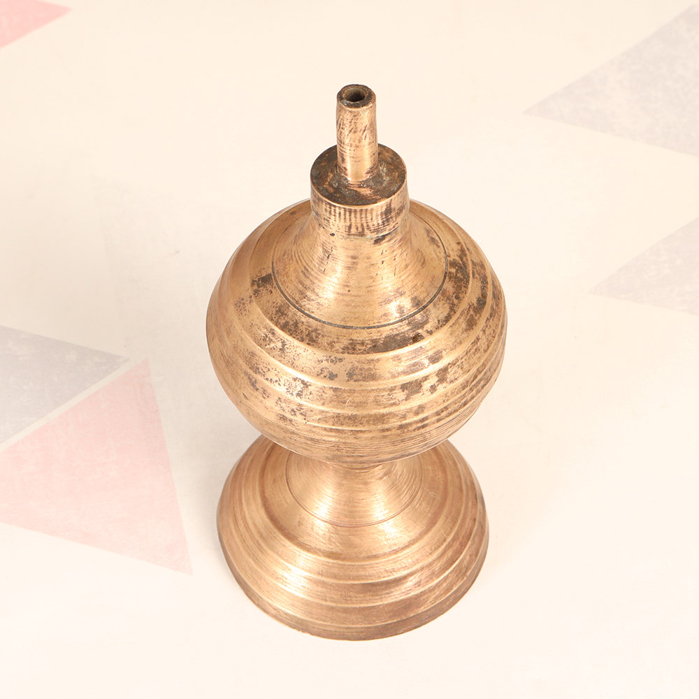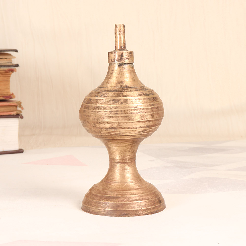 Illuminate your space with the timeless glow of a vintage brass oil lamp. Crafted by skilled artisans in Central India, this stunning lamp blends old-world charm with modern functionality, bringing a touch of elegance to any room. Infusing your home with a warm, inviting ambiance has never been easier. The vintage brass oil lamp emits a soft, soothing glow that creates an instant sense of calmness and relaxation. Whether you're unwinding after a long day or setting the mood for an intimate gathering, this lamp will transform your space into a sanctuary of comfort and tranquility. Bring the rich cultural heritage of Central India into your own living room. This heirloom-quality lamp is not only a functional light source, but a stunning work of art that will elevate your decor and spark conversation with guests. Experience the beauty of traditional craftsmanship in a modern form - get your vintage brass oil lamp today.