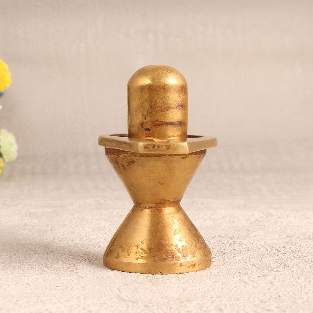 A Brass Shivling with an antique golden finish that is a true masterpiece meticulously crafted by skilled Indian artisans. This stunning piece is not only a symbol of divinity but also a work of art that exudes timeless elegance. Crafted with utmost precision and passion, this Shivling is made from high-quality brass, known for its durability and captivating shine. The antique golden finish lends an air of vintage charm, making it the perfect addition to your home, office, hotel, cafe, shop, or restaurant prayer room. This versatile creation serves both spiritual and aesthetic purposes. It embodies a sacred symbol for worship and meditation, while its intricate design and antique finish make it a captivating decorative element. Elevate your interior decor by including it in your vintage collection or showcase it at exhibitions to inspire admiration. As a token of love and blessings, this Brass Shivling is a thoughtful gift for your loved ones during special, festive, or auspicious occasions.