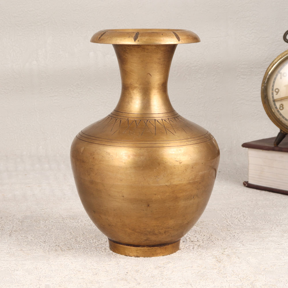 Immerse your living space in the timeless allure of the Vintage Brass Flower Pot that is an exquisite piece meticulously crafted by skilled Indian artisans in the revered Himalayan art tradition. This flower pot boasts a rich antique brown finish, adding a touch of warmth and nostalgia to any environment. Handmade with precision and passion, it epitomizes the artistry and craftsmanship honed over generations. Forged from high-quality brass, this flower pot is more than a mere decorative item, it's a testament to the heritage of Indian craftsmanship. Its ornate design and unique vintage charm make it a versatile addition suitable for homes, offices, restaurants, hotels, or cafes. Transform your surroundings with the grace of this indoor flower pot, creating an ambiance that resonates with history and elegance. Beyond its aesthetic appeal, the Vintage Brass Flower Pot is an ideal addition to any vintage collection. Embrace the opportunity to curate your space with a piece that transcends time. As a thoughtful and meaningful gift, this flower pot is perfect for expressing love and good wishes on special, festive, or auspicious occasions.