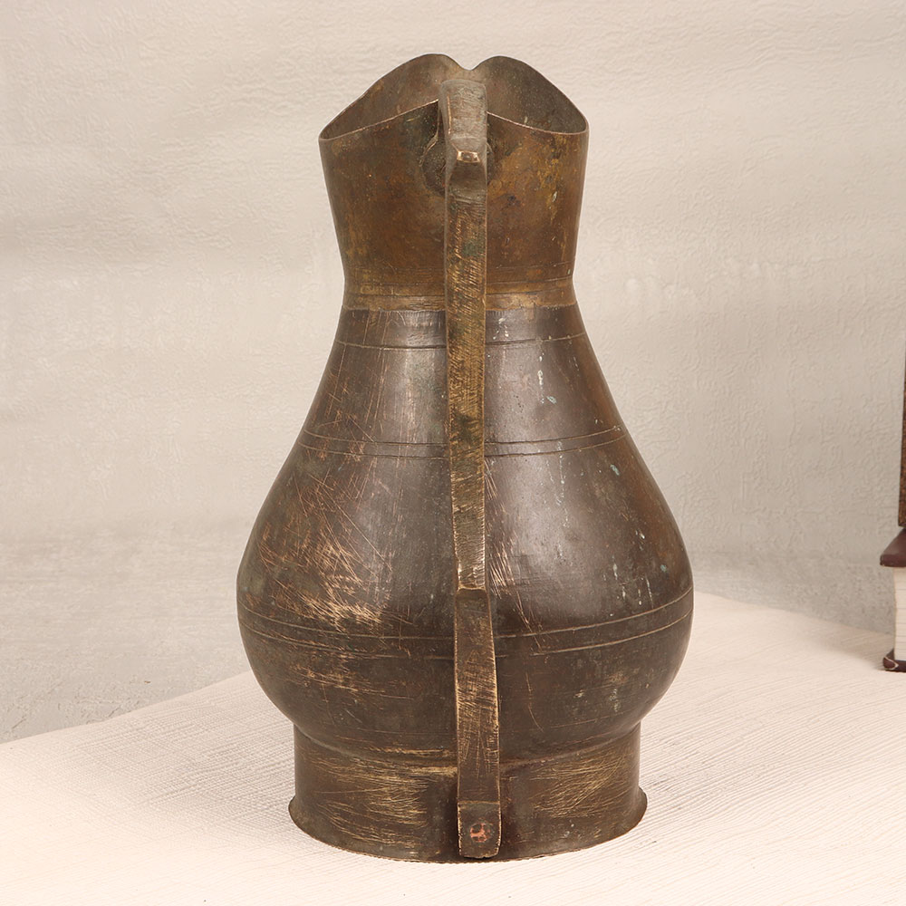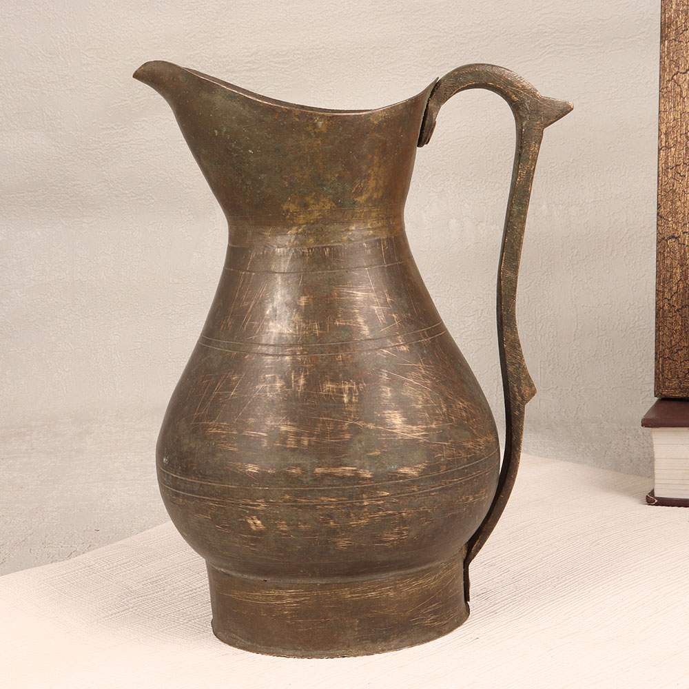 Decorate your home with the timeless charm of our Vintage Brass Jug that is a masterpiece meticulously crafted by professional Indian artisans in the Himalayan Art tradition. This exquisite piece seamlessly combines functionality with aesthetic appeal, featuring a graceful handle and an antique brown finish that exudes sophistication. Handmade from high-quality brass, each jug is a testament to the artistry and craftsmanship that has been passed down through generations. The rich, warm tones of the antique brown finish add a touch of nostalgia, making it a perfect addition to any home, office, restaurant, hotel, or cafe seeking a touch of vintage elegance. This versatile piece serves as more than just a decorative item, it can double as a unique flower pot, breathing life and nature into your space. Its versatility extends to becoming a standout piece in any vintage collection, showcasing the historical and cultural significance of Himalayan craftsmanship. Whether as a personal indulgence or a thoughtful gift, this Vintage Brass Jug is ideal for special, festive, or auspicious occasions. Share the gift of timeless beauty with your loved ones, as this jug captures the essence of tradition and artistry.
