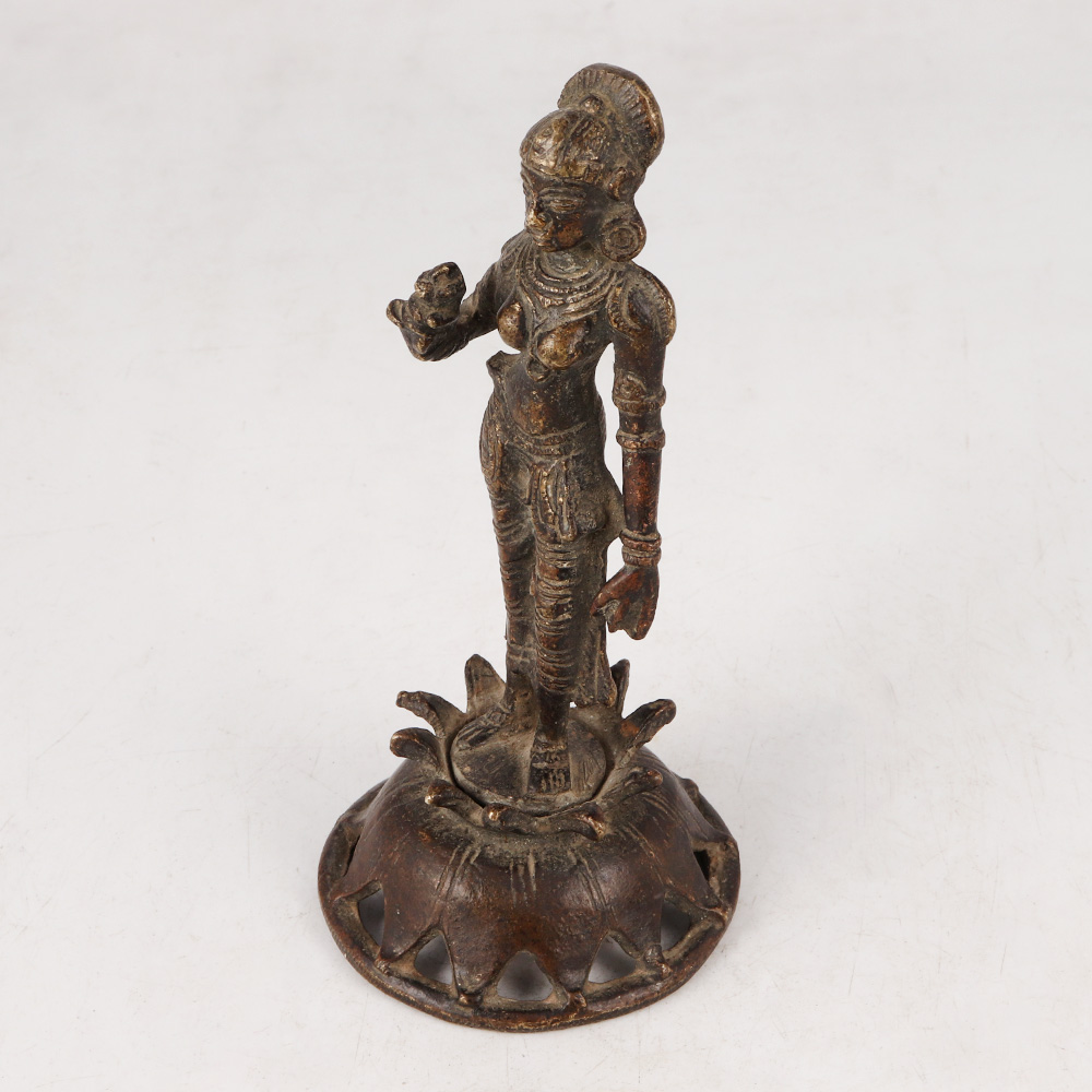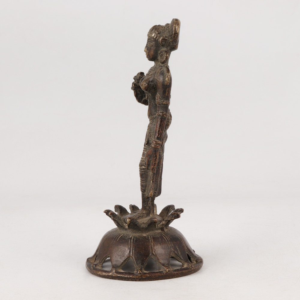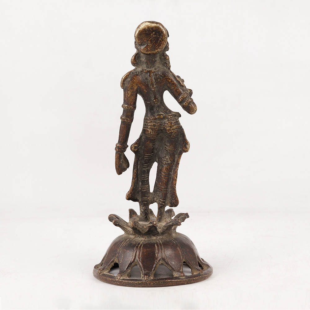Experience the divine presence of Goddess Parvati with this exquisite brass statue that encapsulates the essence of South Indian Art. Standing gracefully on a delicately crafted flower platform, this magnificent sculpture radiates a sense of timeless beauty. Meticulously handmade by skilled Indian artisans, each detail is carefully rendered, making it a true masterpiece. The antique dark finish adds a touch of antiquity, evoking a sense of reverence and mystique. Crafted from high-quality brass, the statue is not only visually stunning but also durable, ensuring it will be cherished for generations to come. Versatile in its use, this Goddess Parvati statue is perfect for adorning your home, office, restaurant, hotel, cafe, or shop prayer room. It serves not only as an object of worship but also as an elegant decoration or valuable addition to any collection. Embrace the spirit of generosity by presenting this statue as an auspicious gift to your loved ones on their special, festive, or auspicious occasions.