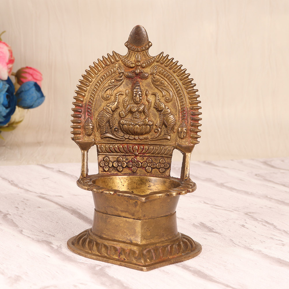 Ignite your devotion and create a serene ambiance for prayer and ritual with the captivating Vintage Brass Gajlaxmi Oil Lamp. This stunning piece blends timeless elegance with a functional design that has been revered for centuries. The Vintage Brass Gajlaxmi Oil Lamp is more than just a beautiful home accent - it's a sacred tool to elevate your spiritual practice. The mesmerizing flame will draw your focus inward, helping you enter a state of deep contemplation and connection. Whether you're observing daily rituals, performing puja, or simply seeking a moment of peaceful reflection, this lamp will become an invaluable companion. Infuse your space with the divine energy of the Gajlaxmi goddess and create an atmosphere of reverence and abundance. This versatile lamp is a timeless treasure that will be cherished for generations, adding a stunning touch of tradition to any home. Embrace the power of ritual and let the Vintage Brass Gajlaxmi Oil Lamp guide you on your spiritual journey.