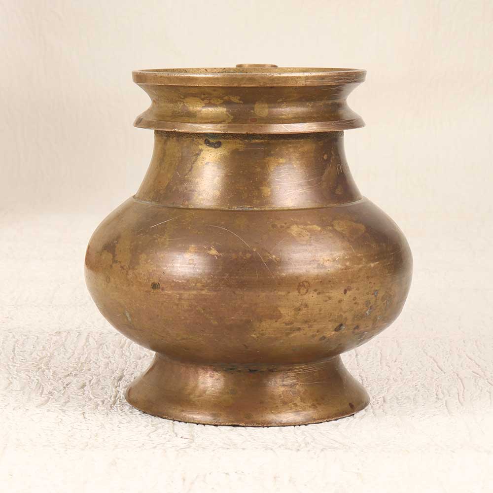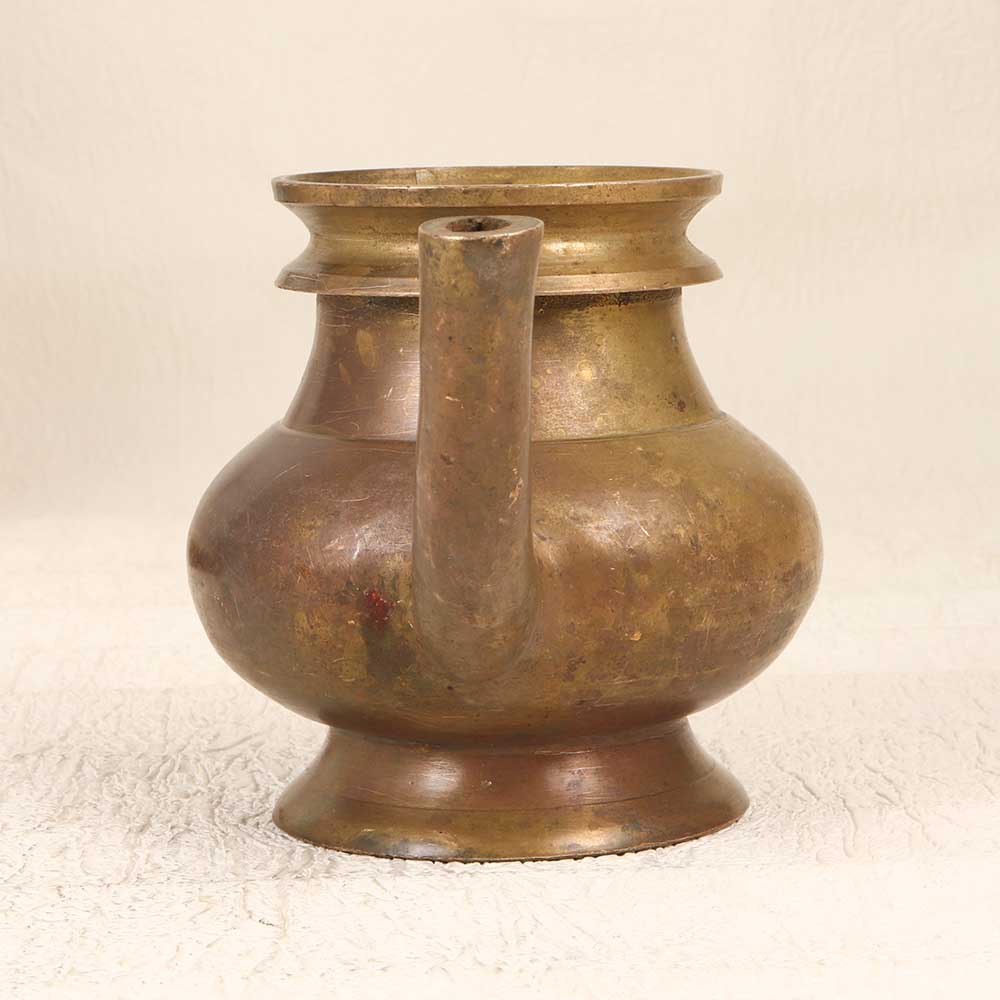 Make a divine statement in your home with this exquisite vintage brass holy water pot. Crafted in South Indian Art style, this pot makes it easy to bless your space in style. Bring spiritual tranquillity into your daily life with this holy water pot. The vintage brass catches the light beautifully and feels substantial and well-crafted in your hands. Pouring holy water from the convenient spout lets you sanctify your home in a meaningful ritual. Ideal for the spiritual seeker who appreciates Hindu holy symbols, this pot elevates your home decor. Place it in your puja room, use it in rituals, or display it as an artistic accent piece. However, you use it, this holy water pot makes your faith a visual part of your living space.