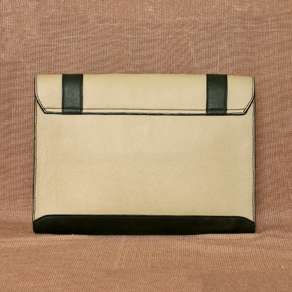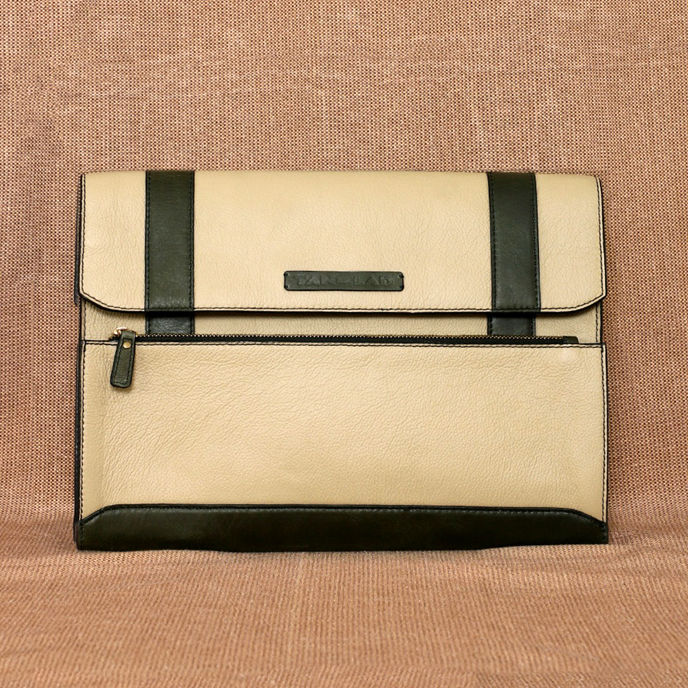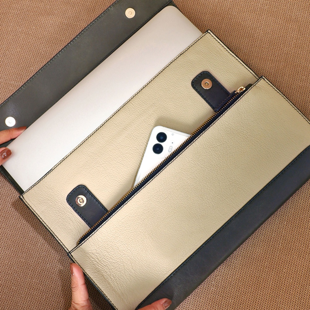 Crafted with Honey Dew, Dove and Jungle leather, it features a secure magnetic flap closure, the Basta Sleeve provides easy access to the main compartment, designed to protect your laptop while maintaining a slim profile. For added convenience, it includes a half zipper compartment on the outside front, ideal for storing essentials like documents or cables.