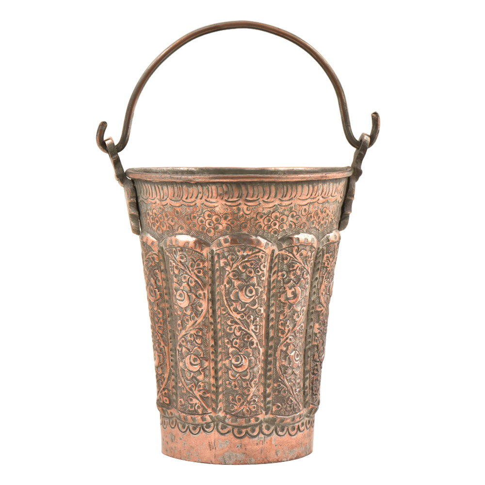 • Handmade India-Inspired Copper Bucket With Handle