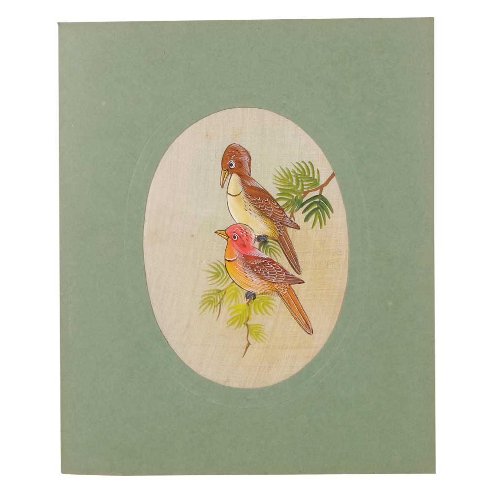 Handmade Indian Miniature Watercolor Bird Pair Art