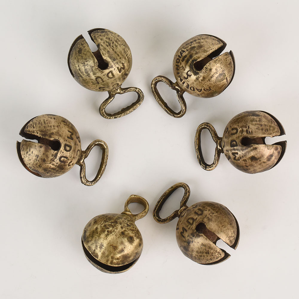 - Set of 6 authentic vintage bell metal cow bells from Northern India