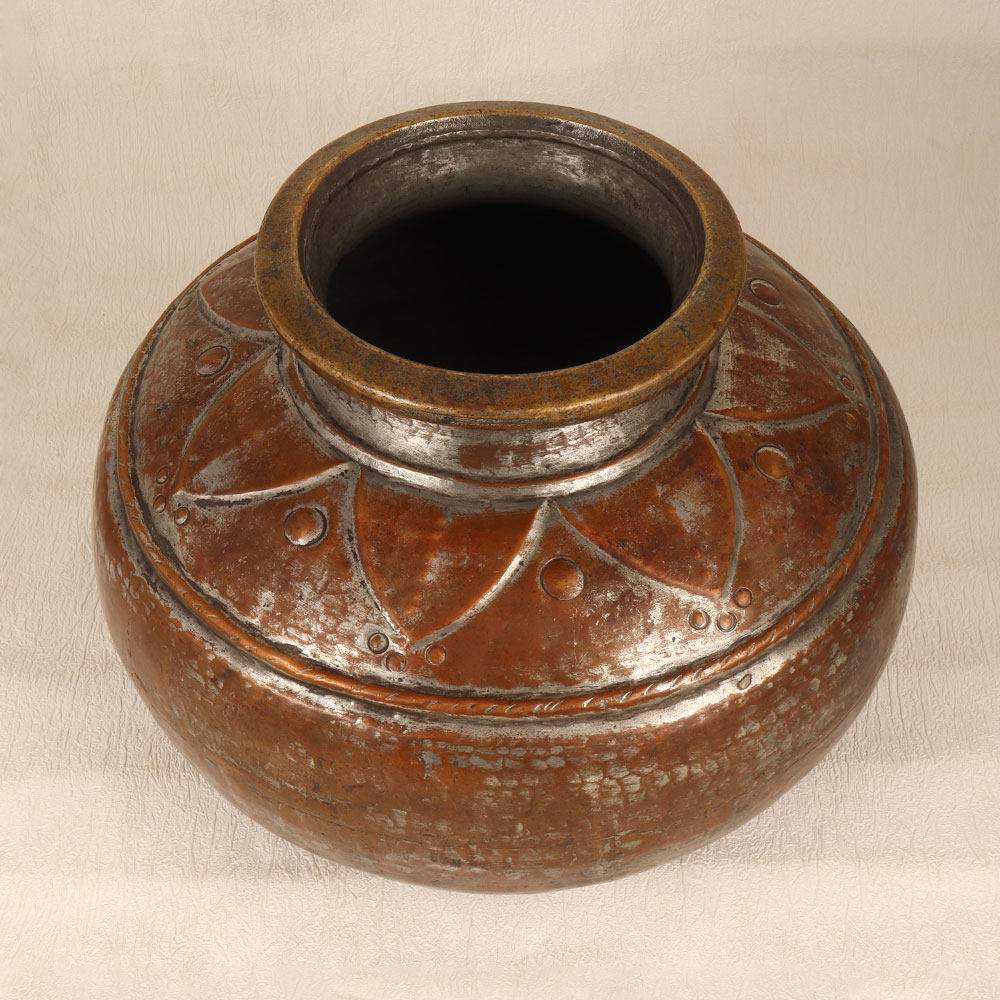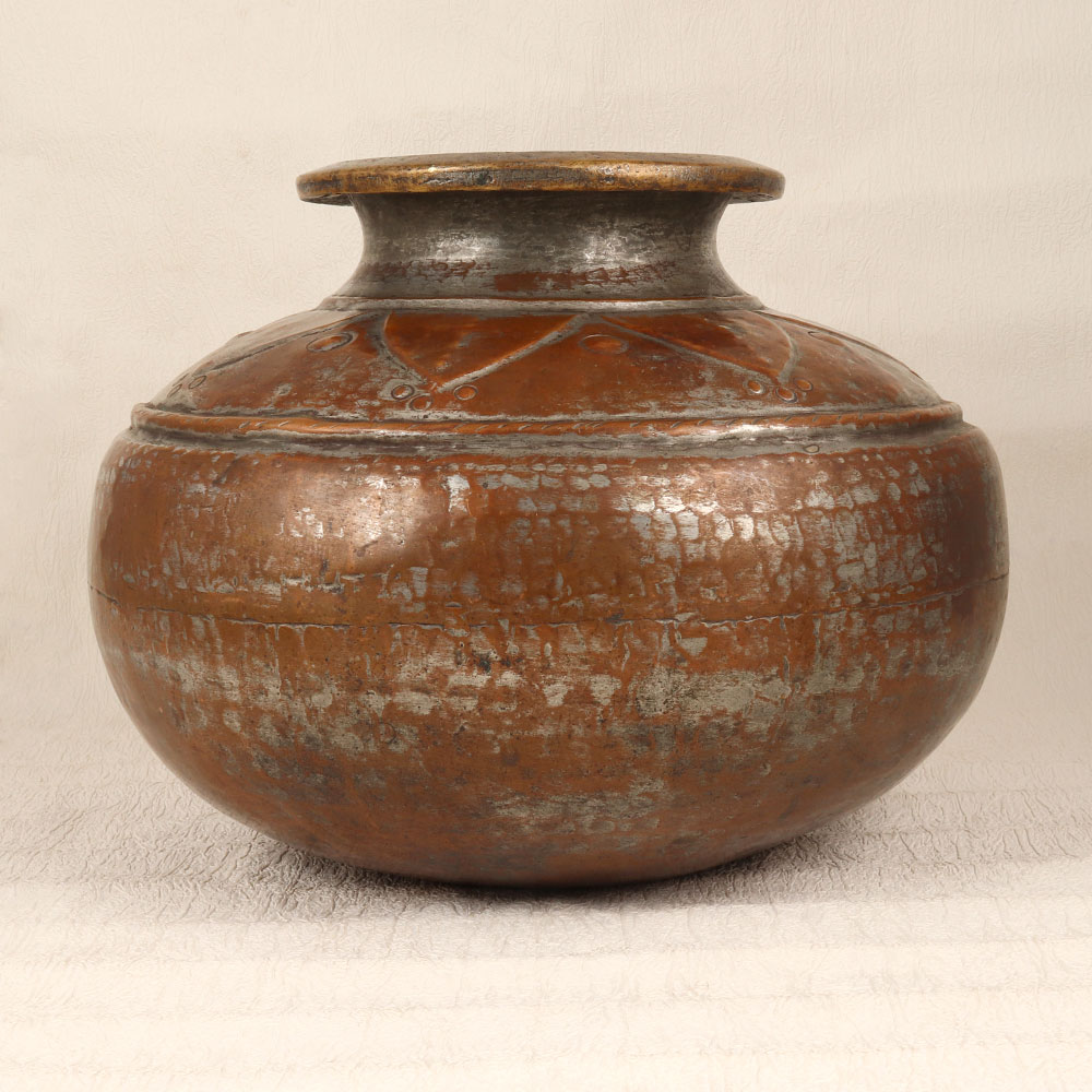 Enhance your living or working space with the timeless allure of our Vintage Copper Pot that is a masterpiece meticulously crafted by skilled Indian artisans in the exquisite tradition of Islamic Art. This enchanting piece is a celebration of heritage, showcasing the artisan’s expertise in transforming high-quality copper into a work of functional art. Adorned with intricate engravings that tell tales of craftsmanship and history, the pot boasts an antique brown finish, lending an air of sophistication and charm. Whether gracing your home, office, restaurant, hotel, or cafe, this handmade copper pot transcends its utilitarian purpose. Its versatile design allows it to be repurposed as an indoor flower pot, adding a touch of nature to your surroundings. Furthermore, it effortlessly integrates into any vintage collection, becoming a focal point of admiration. Beyond its aesthetic appeal, this copper pot serves as a thoughtful gift for your loved ones during special, festive, or auspicious occasions. Each pot is not just an object; it's a testament to the rich cultural heritage and the skilled hands that bring it to life.