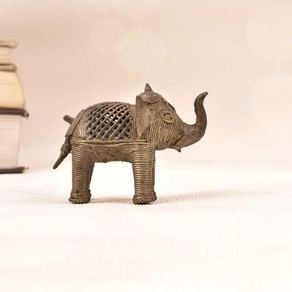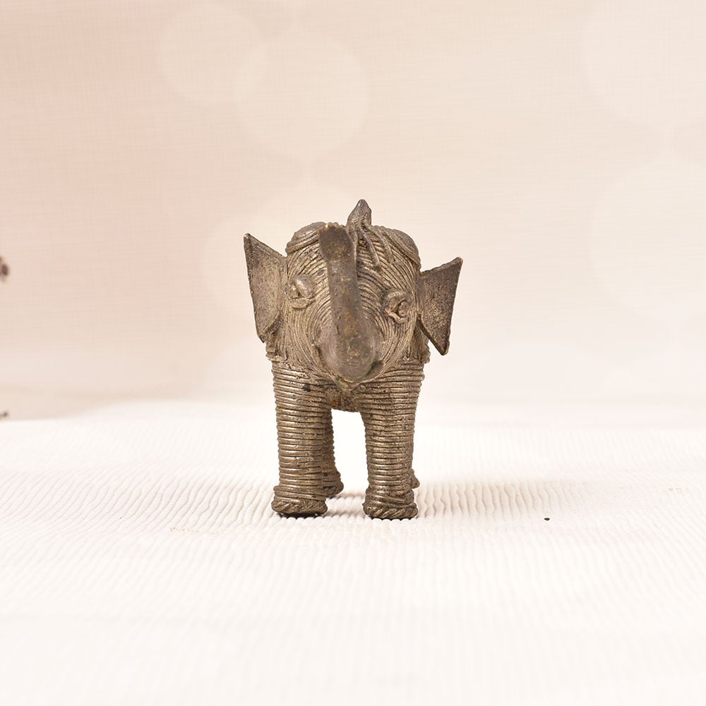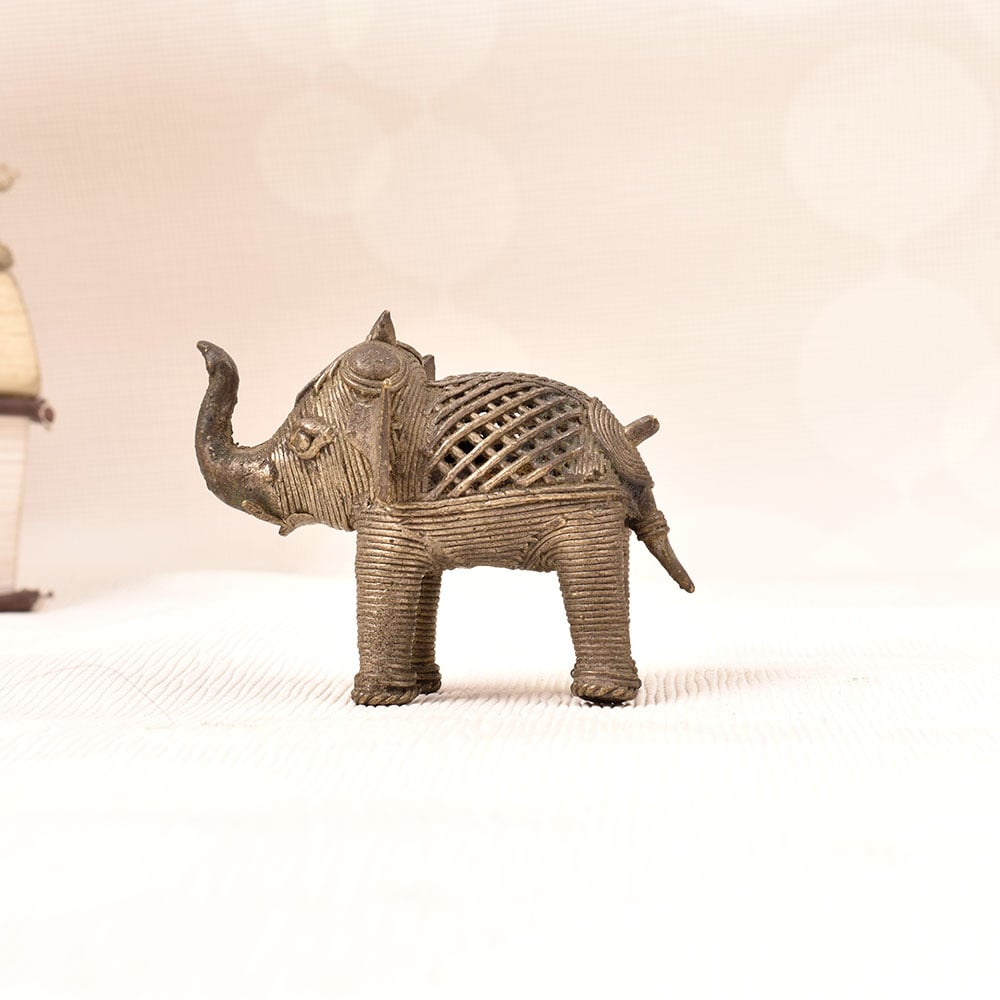 This captivating vintage brass elephant statue is more than just a decorative piece - it's a work of art that commands attention. Meticulously crafted with intricate jali work, the tribal-inspired design celebrates the rich cultural heritage of India. The substantial weight and generous size of this brass elephant lend an air of sophistication, making it a bold, striking addition to any space. Whether you're looking to elevate your living room, bedroom, or office, this vintage brass elephant statue will instantly transform the ambiance. Its timeless, elegant aesthetic seamlessly complements both traditional and modern décor styles. Display it on a mantel, side table, or bookshelf to infuse your space with worldly, artisanal charm. This heirloom-quality piece is sure to become a treasured conversation starter that friends and guests will admire for years to come.