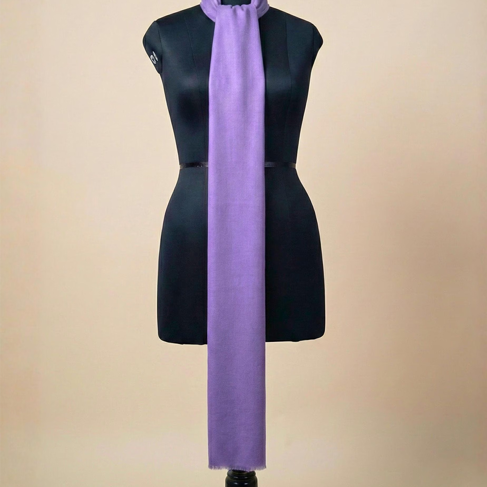 This handcrafted Kashmiri stole is woven in a refined woolpolyester blend, offering a harmonious balance of softness, warmth, and fluid drape. Finished in a delicate lavender hue, the stole reflects Kashmirs tradition of understated elegance, making it a timeless accessory for both contemporary and classic wardrobes.