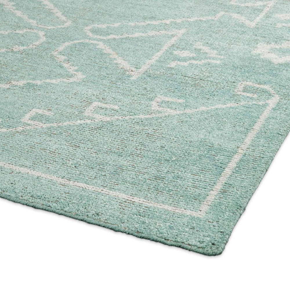 This rug represents India’s skilled hand-knotting tradition, blending eco-friendly bamboo fibers with cotton to create a rug that is both sustainable and stylish.