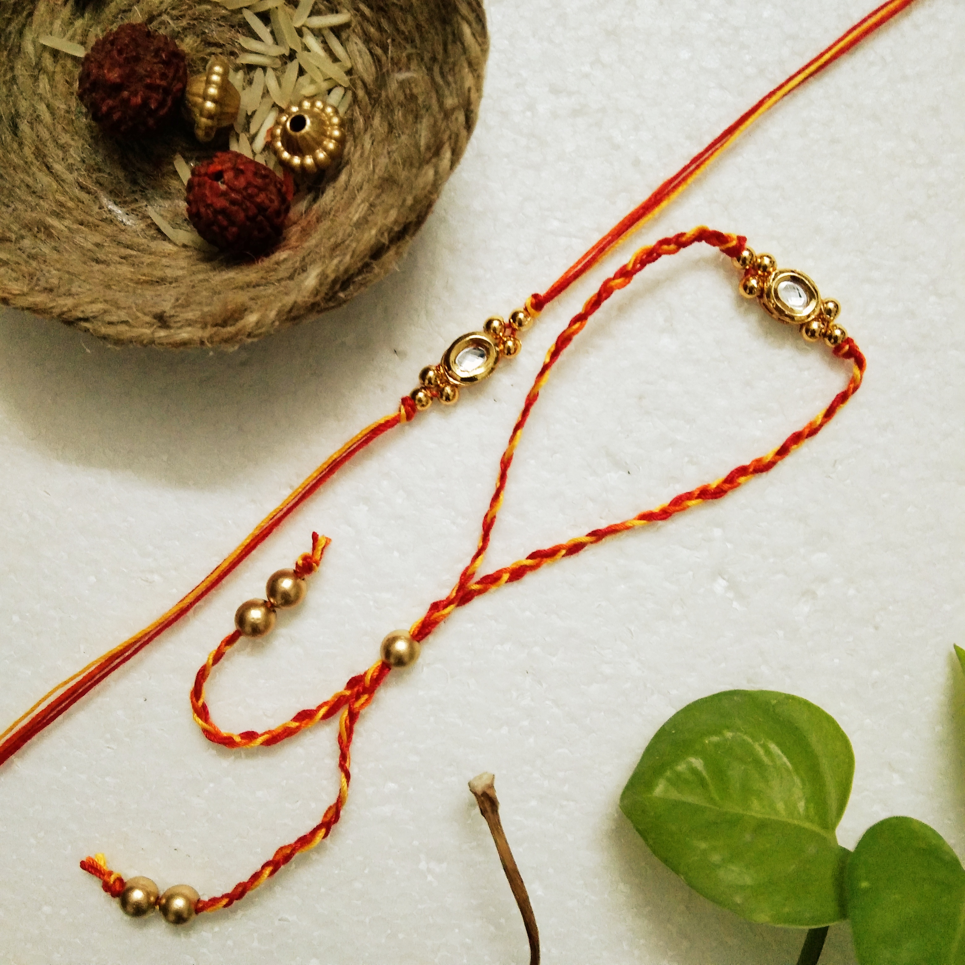 Celebrate Raksha Bandhan with a unique rakhi crafted from kundan/acrylic beads.