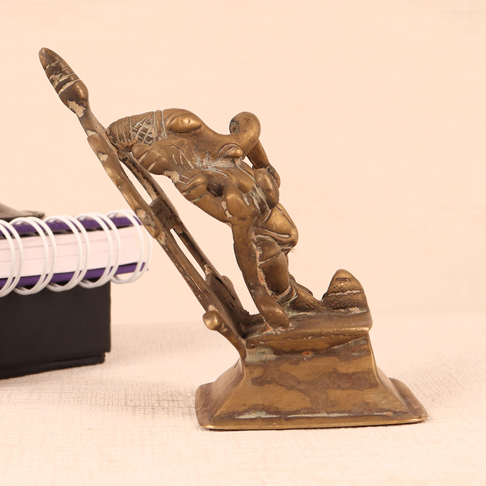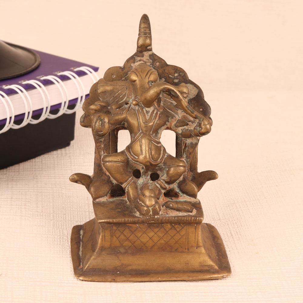 Buy a Brass Statue of Lord Ganesha online from our website and get a hassle free delivery. Crafted with precision and devotion by highly talented Indian artisans from Himalayan Art, this exquisite masterpiece exudes an aura of antique elegance. Lord Ganesha, the revered deity of wisdom, prosperity, and obstacle removal, is seated gracefully with a Lingam placed in front of him. His divine presence embodies strength, intellect, and the ability to overcome life's hurdles. The statue, with its rich antique brown finish, adds a touch of rustic allure, making it perfect for a variety of settings. Whether it's your home, office, restaurant, hotel, cafe, or shop's prayer room, this statue seamlessly blends spirituality with aesthetics. Its versatile appeal allows it to become the focal point of worship or a striking decorative piece. For collectors, it's a treasure to add to your vintage collection, while as a thoughtful gift, it carries blessings and positive energy for your loved ones on special, festive, or auspicious occasions.