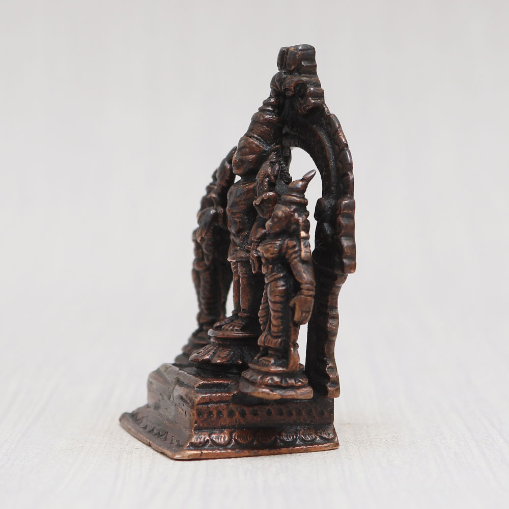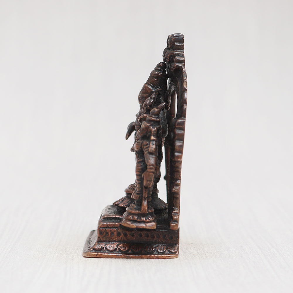 An exquisite masterpiece that captures the divine essence of Lord Srinivasa with his beloved consorts, Sridevi and Bhudevi. This captivating copper statue is meticulously handcrafted by highly skilled and experienced Indian artisans using premium quality copper, showcasing their timeless expertise in the art form. Adorned with a vintage-style finish, it exudes an aura of reverence and elegance. Ideal for your prayer room at home, office, restaurant, cafe, or shop, this god showpiece boasts eye-catching detailing, making it a perfect item for exhibition, decoration, and collection. Not only does this statue serve as a wonderful addition to your personal devotion, but it also makes for an extraordinary gift for your loved ones on special, festive, or auspicious occasions. Whether you're looking for Hindu god statues to buy or an exquisite god idol for worship, this Lord Srinivasa with Sridevi and Bhudevi statue is an embodiment of divinity and artistry combined.