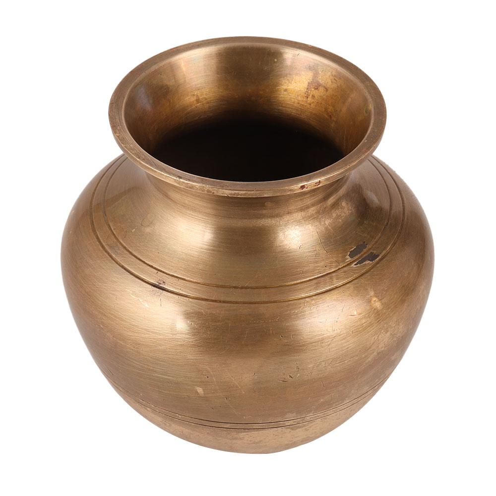 A handmade brass holy water pot or Lota with an antique brown finish, meticulously crafted by local Indian artisans with their hands using traditional methods. This stunning piece is made from high-quality brass, ensuring its durability and longevity, while also adding a touch of elegance to any space. Traditionally used in temples to offer water to the Shivling, this holy water pot serves a significant purpose beyond its aesthetic appeal. It acts as a vessel to absorb negativity from the environment and radiate positive energy, creating a harmonious ambiance. It finds its place not only during havans, Hindu rituals, and auspicious functions but also serves as a pot to store holy water. Placing this holy water pot in the north or east direction of your home is believed to enhance the positive energy flow within the house. Additionally, it can be used as an indoor flower pot, adorning your home or office with natural beauty. With its cultural significance and versatile functionality, this brass holy water pot makes for an exceptional gift choice for your family, friends, or relatives on special, festive, or auspicious occasions.