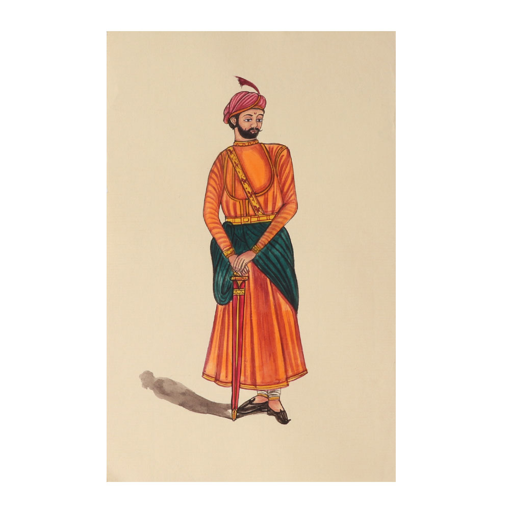 You'll treasure this charming piece watercolor painting  that portrays the magnificence of an Indian Maharajah (King). The ubiquitous and evocative image of a turbaned, jewel-encrusted king conjures up a sense of splendour and majesty. This painting captures the regal appearance of a Maharajah during the heyday of mediaeval India. Indian ethnic art that is very traditional would look beautiful when framed and is sure to liven up any decor.