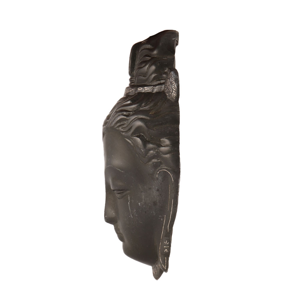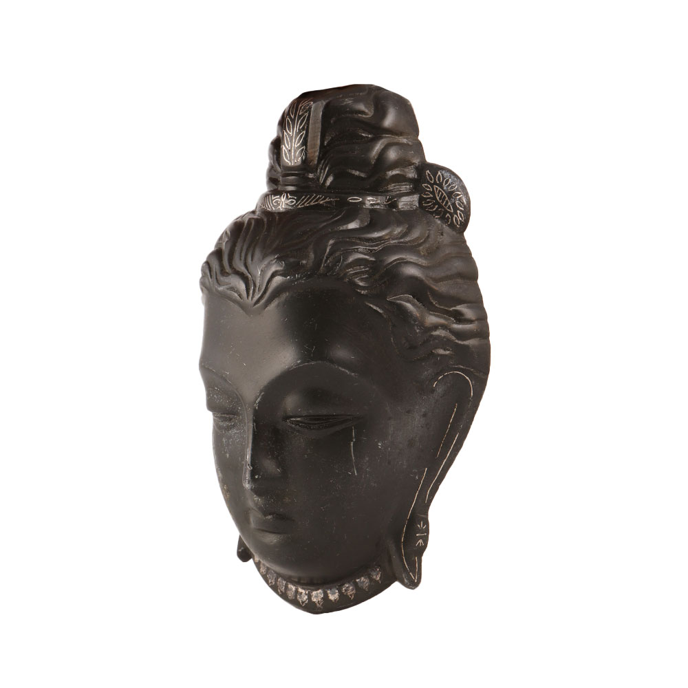 This exquisite metal Lord Shiva head plate is a beautiful representation of the powerful and revered Hindu deity. Crafted with intricate silver inlay work on a black finish, this piece is a stunning addition to any prayer room, home or office. It is perfectly sized to hang on a wall or to display on a table or altar. The detail in this piece is truly exceptional, capturing the essence of Lord Shiva in every curve and line. It is not only a beautiful decorative piece, but also a sacred object that can be used for worship and meditation. This metal Lord Shiva head plate is also an auspicious gift for loved ones, symbolizing protection, strength and grace.