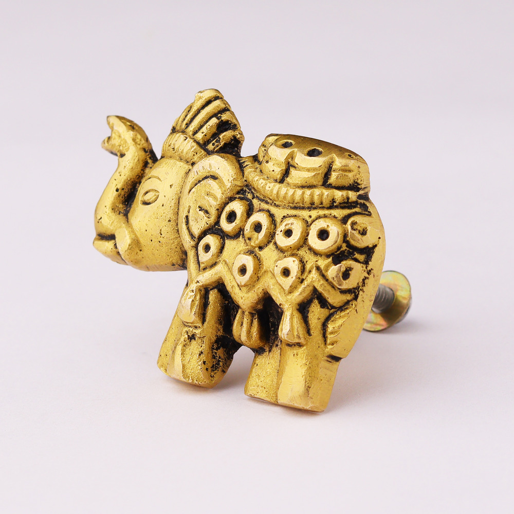 Handmade Modern Golden Brass Elephant Drawer Knob
