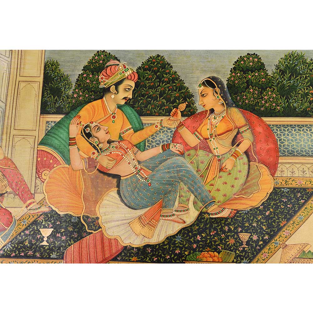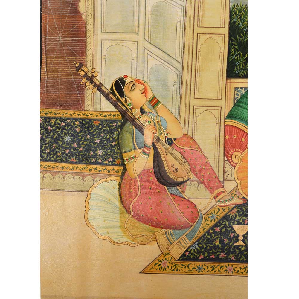 • Handmade Mughal Canvas Painting Of Mujra To Entertain the King