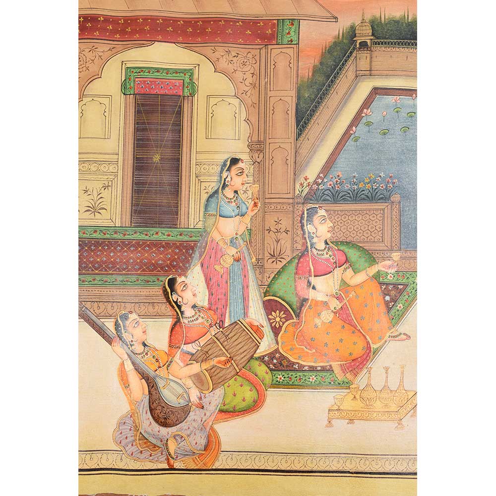Handmade Mughal Canvas painting Of Royal Beloveds