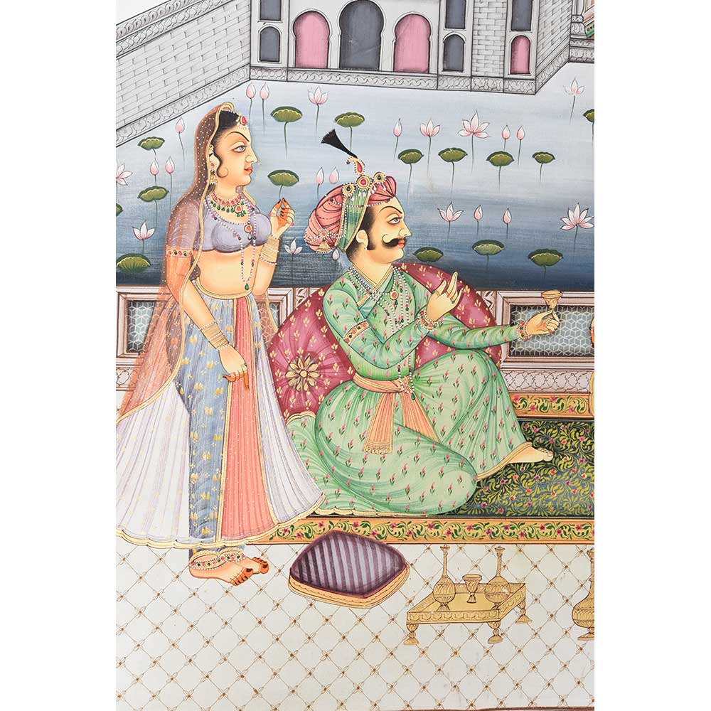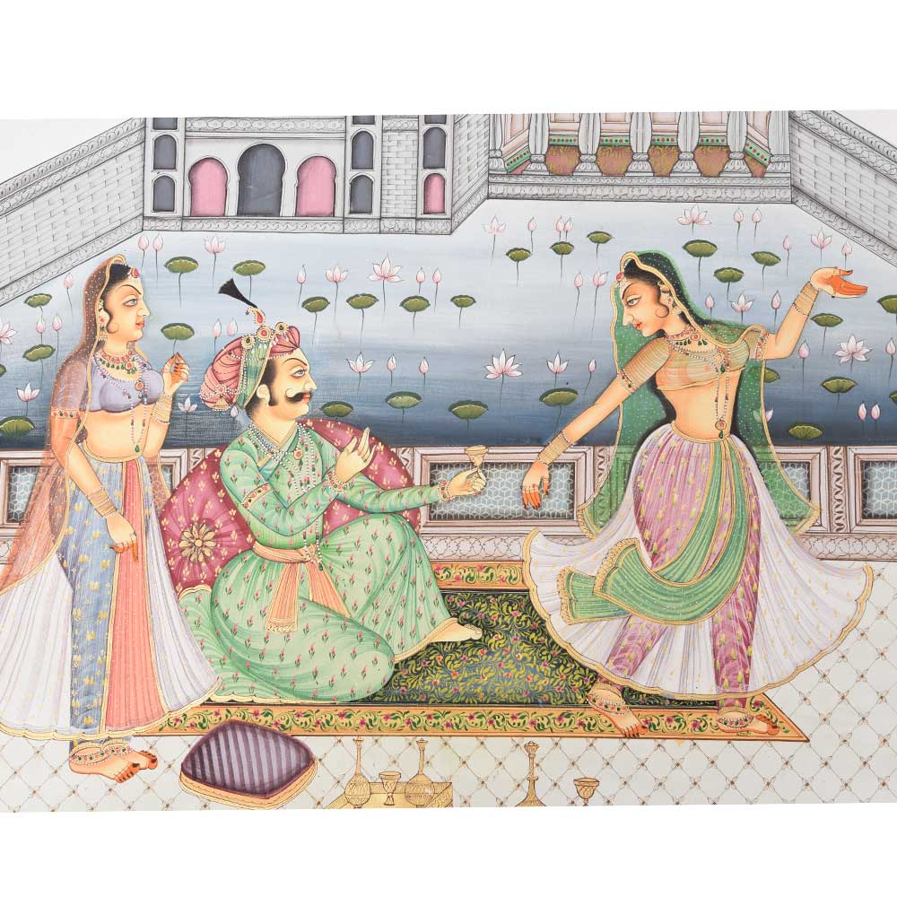 • Handmade Moghul Empire Harem Dance And Wine Scene Painting
