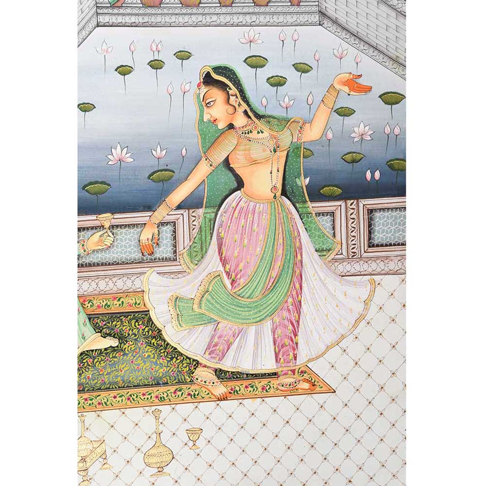 Handmade Moghul Empire Harem Dance And Wine Scene Painting