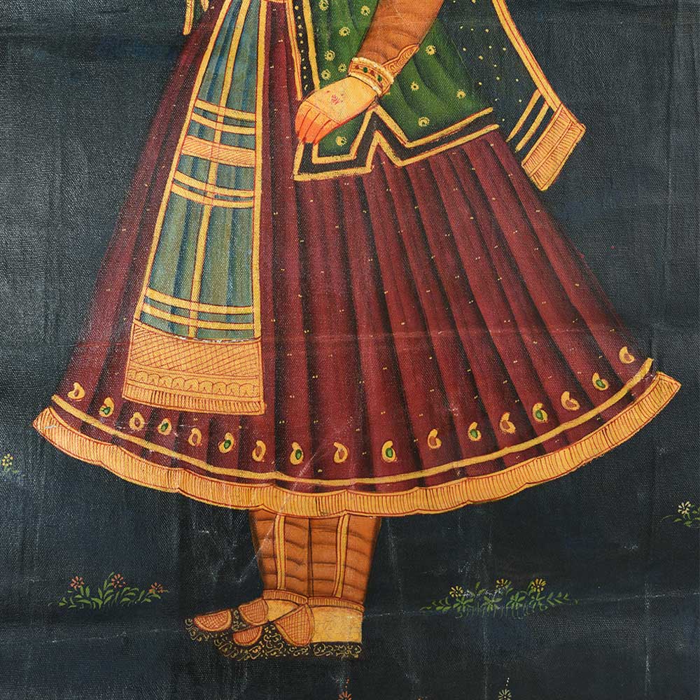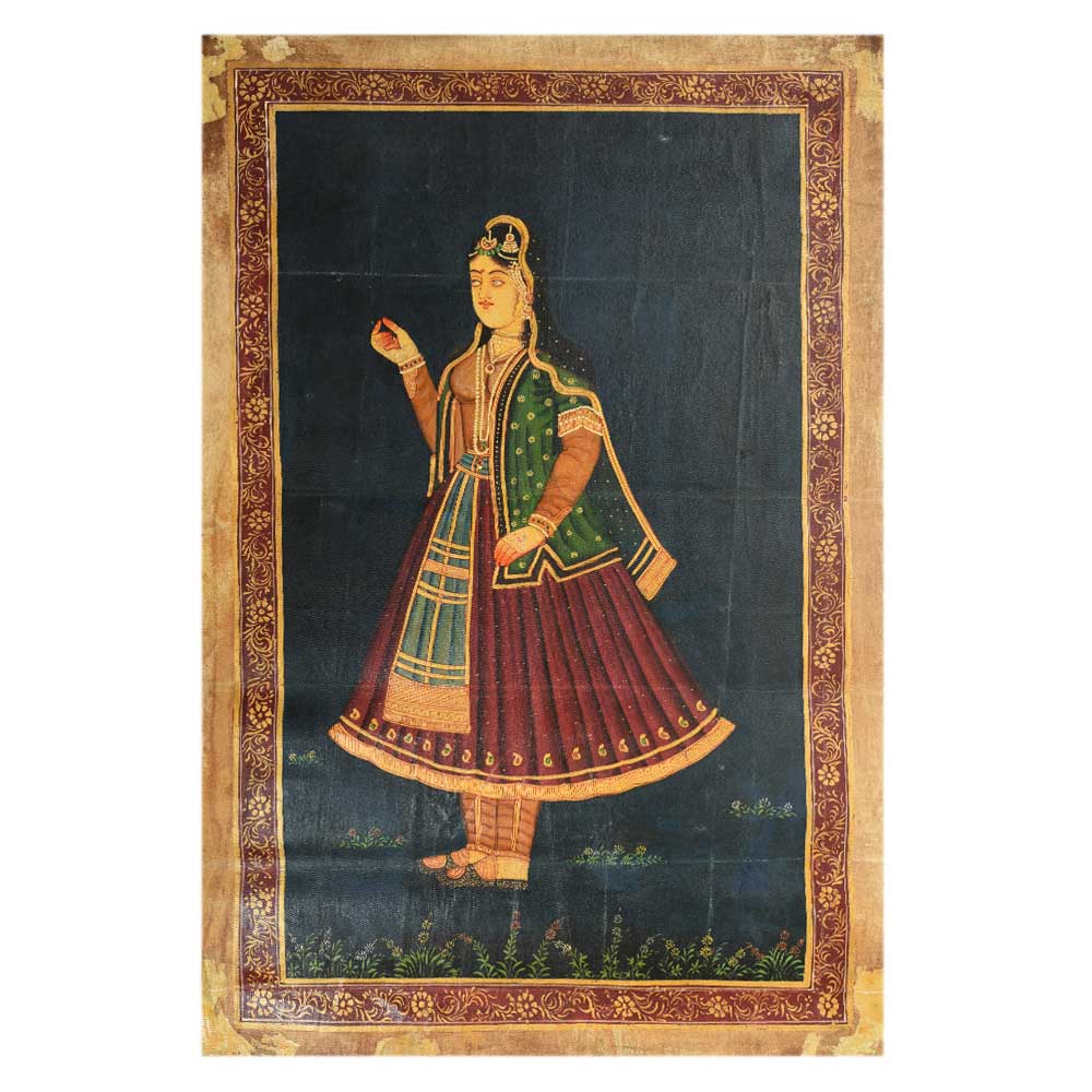 This painting of majestic elegance featuring the Mughal queen in her full glory and elegance will be an impressive addition to any room decoration or art collection.