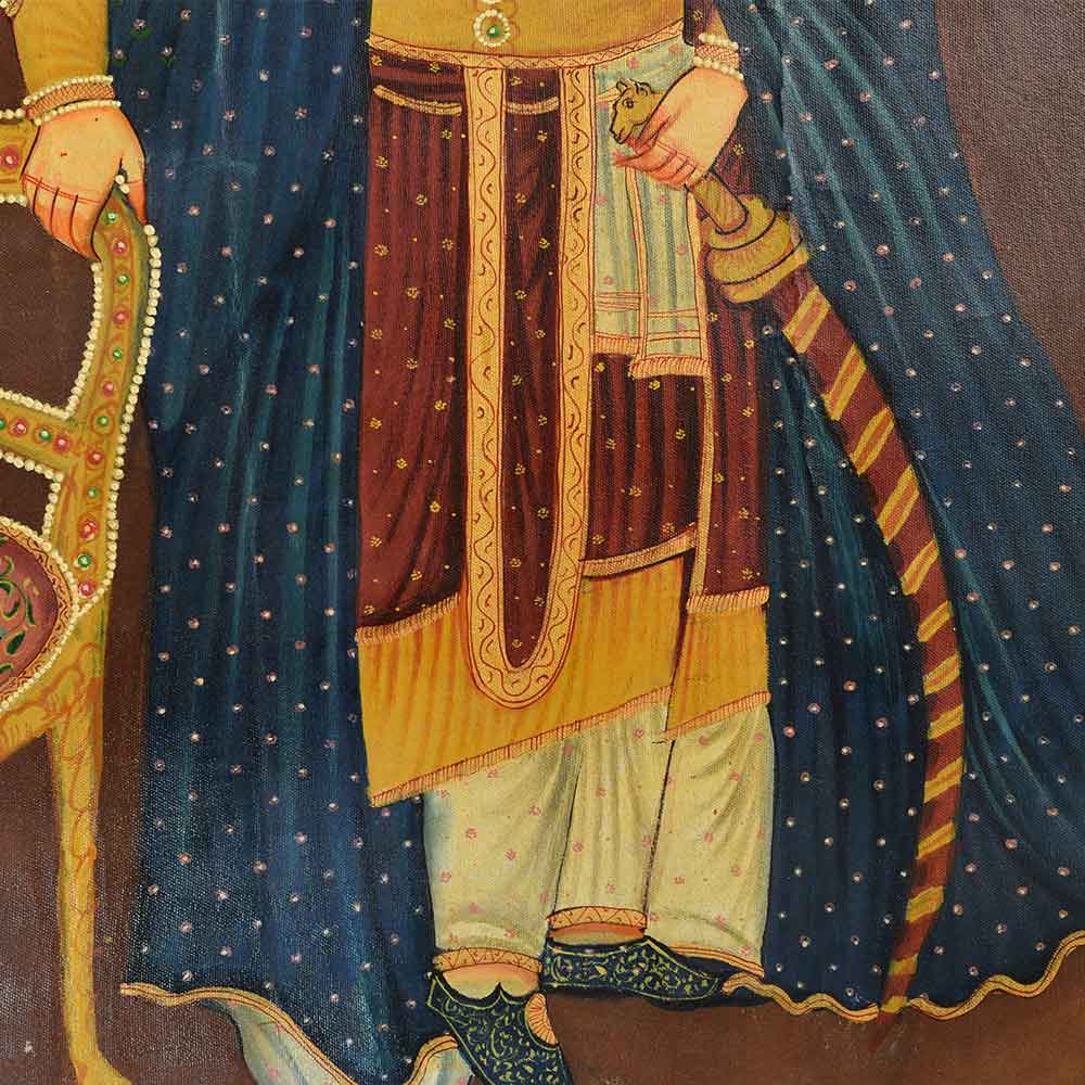 Handmade painting of a Hindu maharaja for home interior decoration, office décor, and gifting to friends and family for housewarmings, weddings, and other special occasions.
