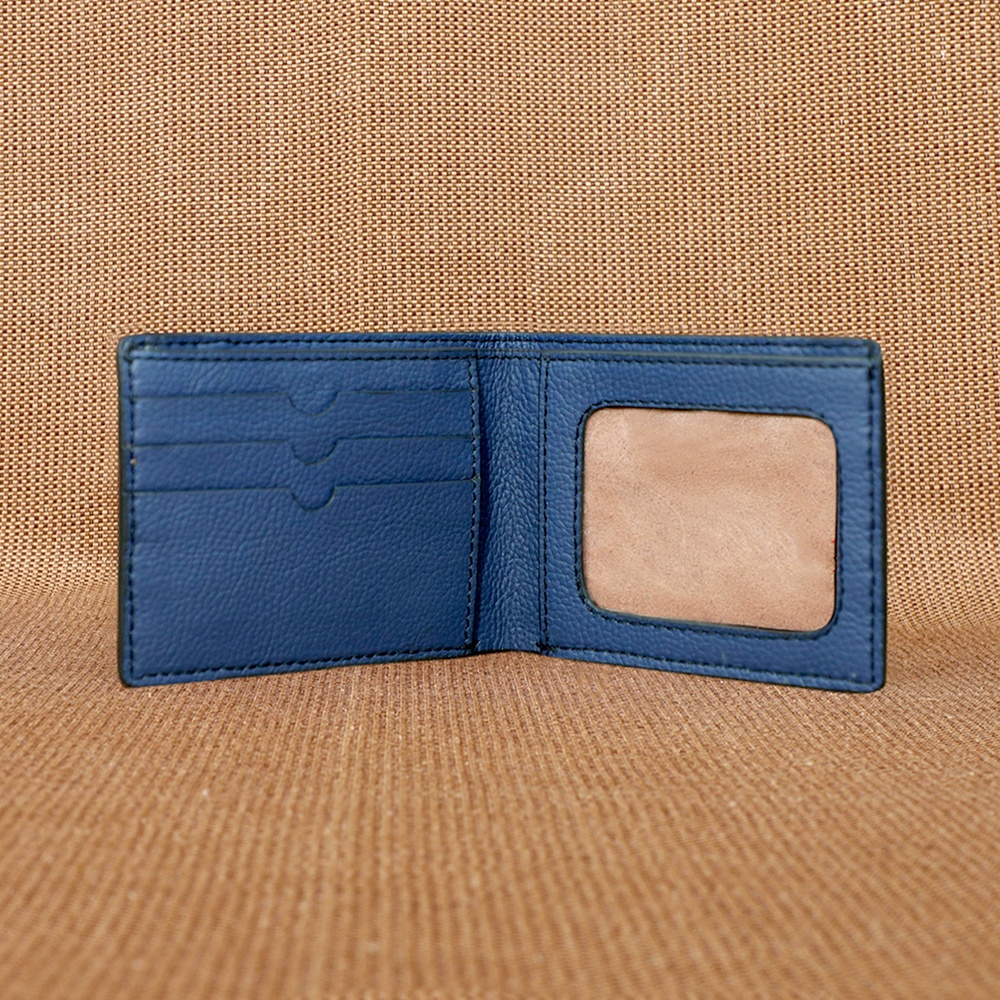 Crafted from gorgeous Navy leather, it features two currency slots, perfect for keeping your cash neatly organized. It also includes two hidden pockets, providing secure storage for important items. The ID window offers quick access to your identification, ensuring convenience without compromising on the design. With three card slots, the wallet ensures that your essential cards are always within easy reach.