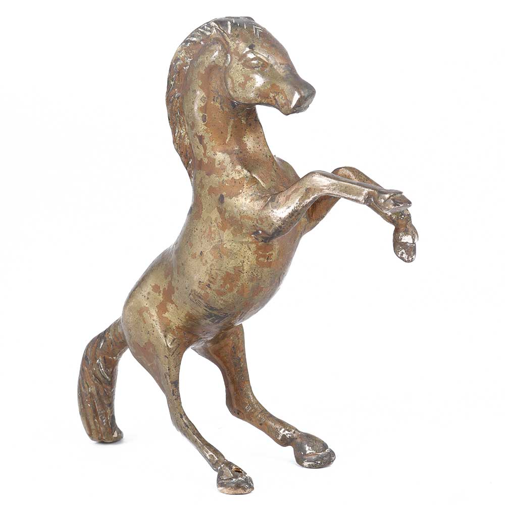 • Handmade Nickel Finish Brass Horse Statue With Uplifted Legs