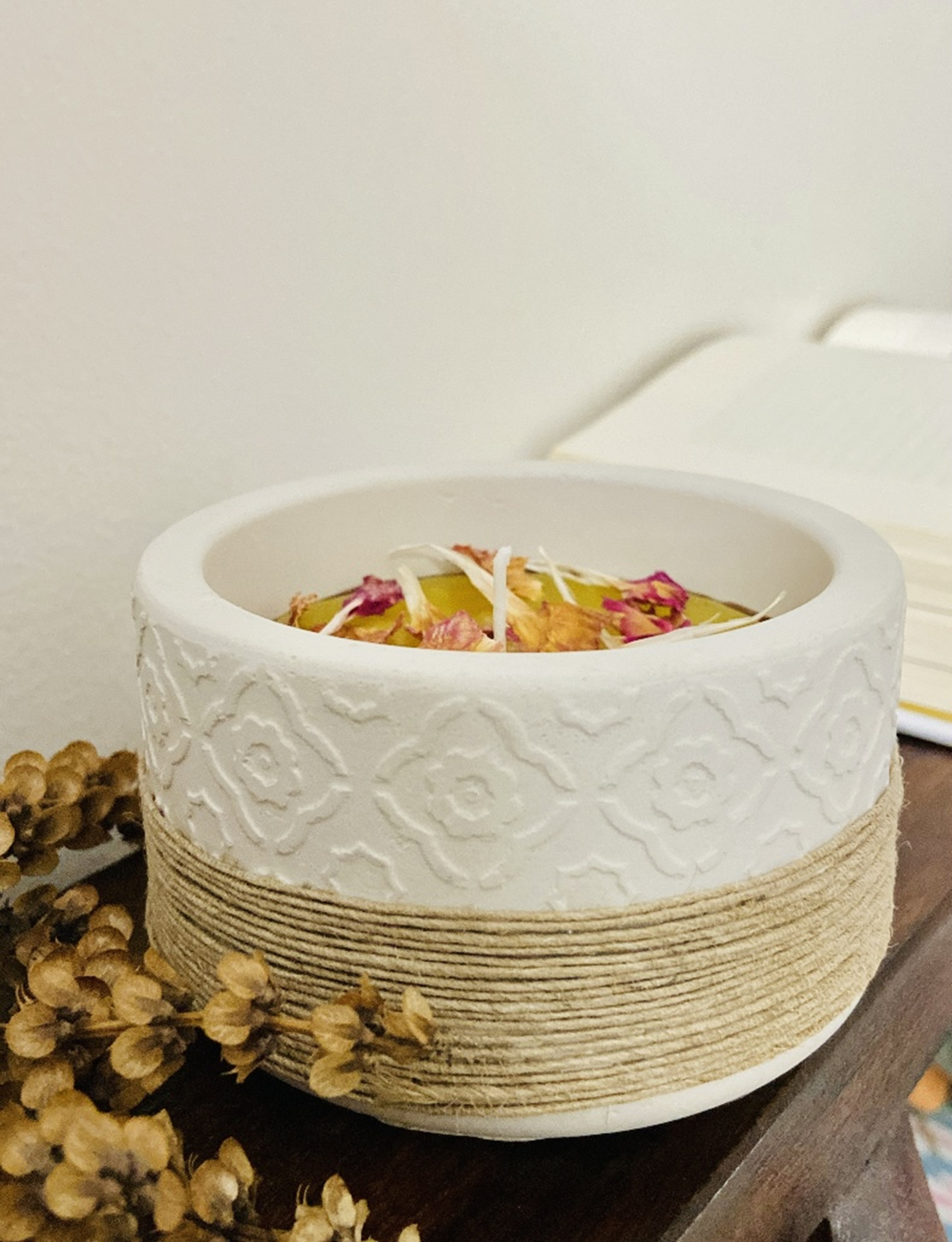 • Handmade Off White Cemented Candle Holder